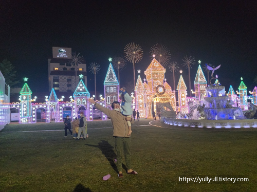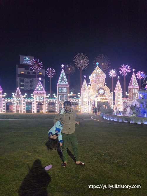 발왕산 케이블카도 타고요. 비가 와서 그런지 꼭대기는 안개밖에 없어 한치 앞도 볼 수 없었답니다. (그래서 후기를 쓸래야 쓸것도 없었어요.) 호텔 돌아와 야무지게 배달음식 시켜먹고 (생각보다 배달음식이 많이 보였답니다.) 밤에 루미나리에 보러 다시 나갔어요. 여기 루미나리에는 유명하더라고요. 호텔 곳곳에 홍보하고 있었어요. 밤에는 딱히 할 게 없기 때문에 안 볼수 없었네요.
