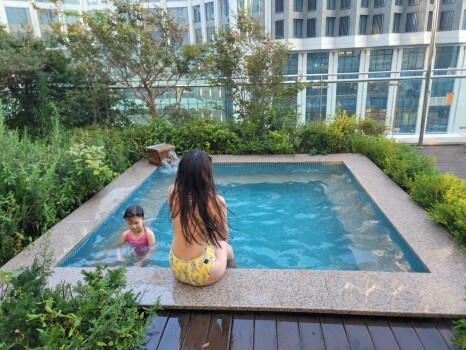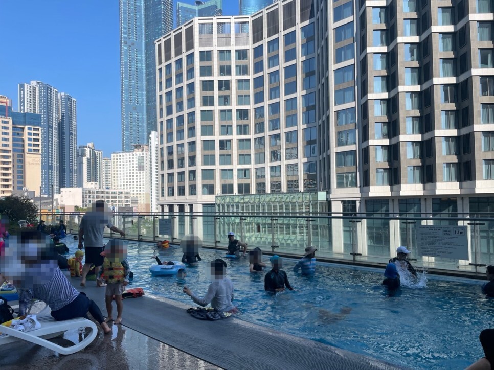 선베드도 있지만 5개 정도로 매우 협소하기 때문에 자리 잡기가 힘들 것 같습니다. 마찬가지 오후엔 체크인하시고 바로 올라오는 분들이 많기에 수영장이 매우 복닥복닥하네요. 오후엔 햇살이 적고 이용객들이 많고 오전엔 햇살이 너무 따갑지만 이용객들이 적어 그나마 조용하게 놀 수 있답니다.