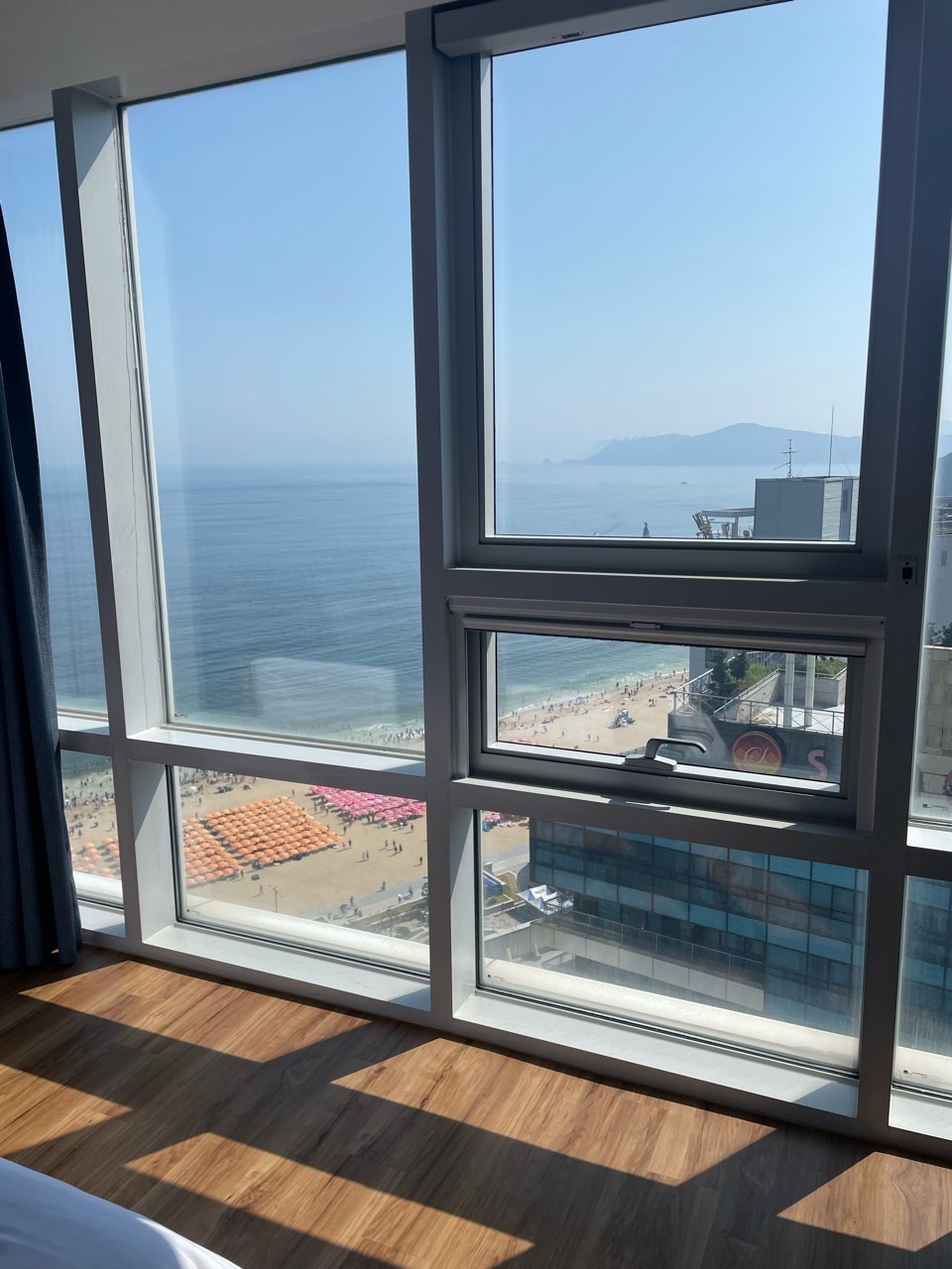 창문을 여니 이렇게 멋진 뷰가 보이네요. 하프 오션뷰라 했는데 제 눈엔 풀 오션뷰네요? 좀 사선으로 봐야 하는 감이 있지만 해운대의 시티뷰와 함께 오션뷰가 펼쳐지니 더 멋져 보여요. 저 멀리 광안대교까지 보이네요. 해운대와 광안리 오션뷰를 동시에 즐길 수 있어요. 아주 대 만족입니다.