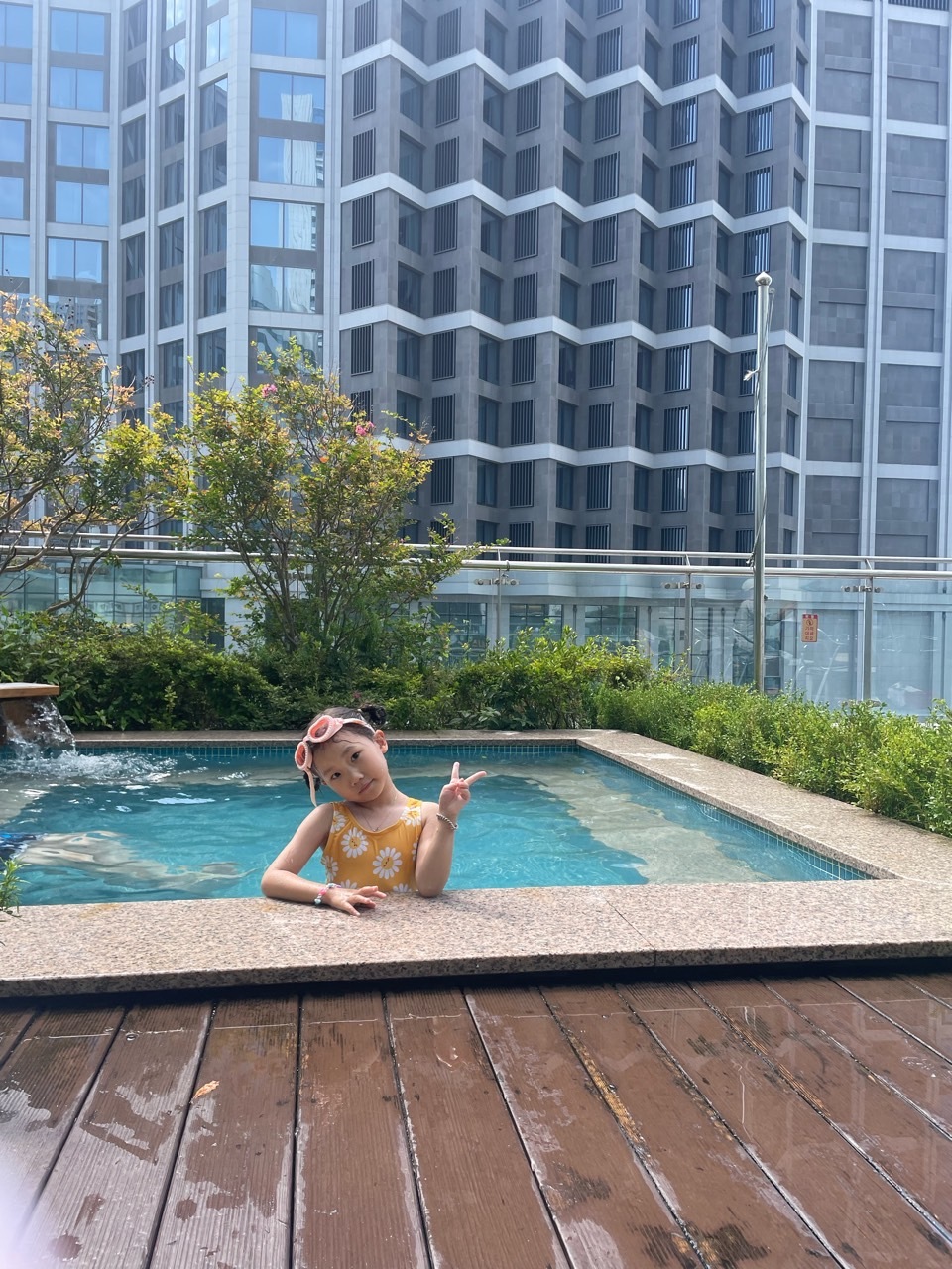 수영장은 프런트 바로 옆에 위치하고 있어 4층에 있답니다. 옆으로 아주 길게 되어 있어요. 높이는 1.1m이고 넓이는 27m입니다. 이 메인 수영장과 3개의 작은 풀이 있어요. 2개의 풀은 차가운 물이고 나머지 하나는 체온 유지로 따뜻한 탕입니다. 그런데 날이 더워 그런 건지 원래 미온수인 건지 아주 물이 따뜻하네요. 시원하다 못해 좀 더워요. 그래서 차가운 풀에서 더 놀았어요. 메인 수영장은 너무 따뜻했네요. 수영장 이용 시 모자 필수입니다. 그래서 수영모를 쓰신 분들도 많이 보이네요. 오후엔 해가 넘어가 그늘이 져 아주 놀기 좋았는데 오전엔 햇살이 너무 따가워 홀랑 다 탔어요. 2시간 정도 놀았는데 수영복 끈 자국이 선명히 남을 정도로 탔답니다. 오전에 놀기엔 좀 힘들 것 같습니다.