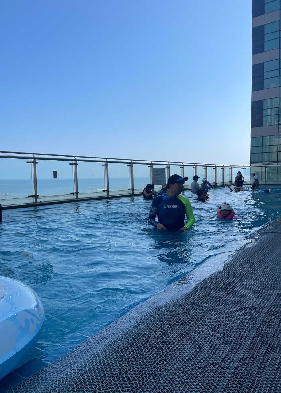 다들 해운대구 주민이 해운대 호텔에 투숙한다고 비웃었고 비록 차로 10분 거리였지만 매우 잘 놀고 왔어요. 늘 오던 해운대인데 투숙객의 마음으로 즐기니 또 다른 느낌이었답니다. 밤에 야시장도 즐겁게 구경하고 맛있는 음식도 먹고 수영장에서 신나게 놀고 밤에 맥주도 마시며 아주 잘 즐겼어요. 해운대해수욕장 바로 앞의 호텔은 다소 가격이 높으니 중간 정도의 호텔을 찾는다면 이곳이 아주 좋을듯합니다.
