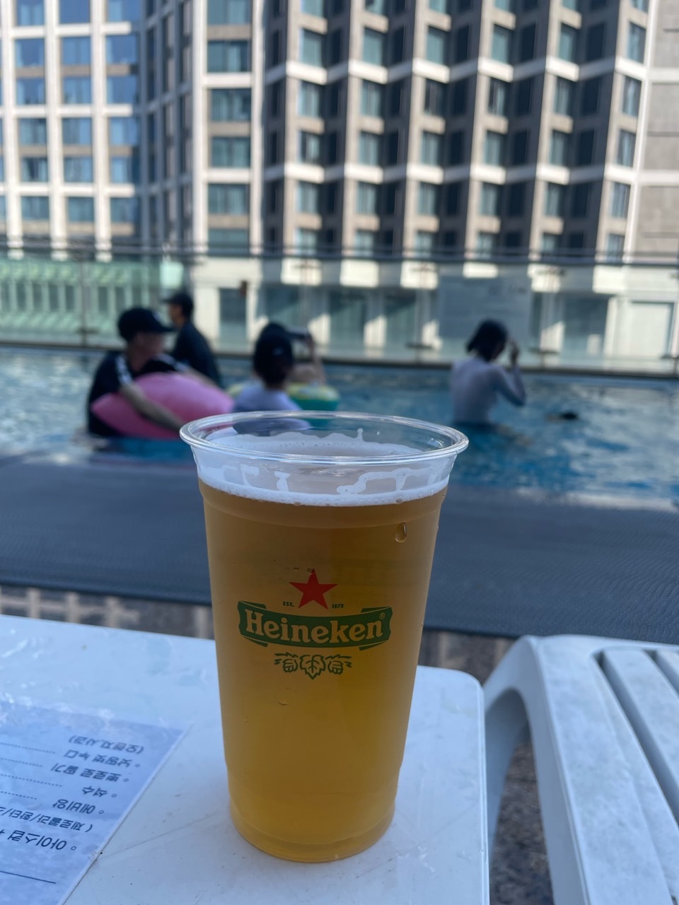 수영장에서 간단한 음식도 먹을 수 있어요. 비록 요금은 높지만 그래도 이런 호사 정도는 누려 줘야 하잖아요. 생맥 한 잔에 8000원에 판매하고 있었답니다. 간단한 어묵, 컵라면, 치킨, 마른안주 등 팔고 있었어요. 전 생맥 한 잔으로 만족했답니다. 밖에 나가면 맛있는 음식들이 훨씬 많으니깐요.