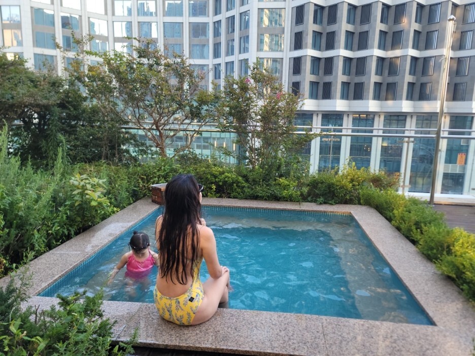 트위드재킷은 입긴 입었는데 사진을 못 찍었고 범블비 착 새입니다. 처음엔 입기 조금 불편했어요. 지금은 3번 정도 입으니 처음보다는 조금 낫습니다. 호텔에서 입어도 너무 이쁘죠? 색상이 진 개나리 색상입니다. 조금 짙은 노란색이에요. 그래서 차분한 게 더 마음에 드네요. 등 라인은 시원하게 x- back입니다만 머리카락으로 가려졌네요. 등살 때문에 조금 뽈록 나온 것 같긴 합니다. 히프 라인도 적당한 노멀 컷이라 활동하기 아주 편리합니다. 그리고 엉덩이도 그럭저럭 잘 가려줘요. 엉덩이가 4개가 되는 불상사는 없지 싶습니다. 수영복 살 때 히프 라인 때문에 고민했는데 범블비와 트위드재킷은 잘 가려주네요.