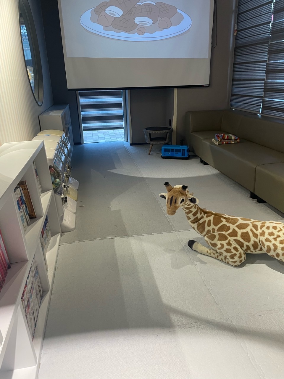 그리고 샤브샤브 집에 잘돼있는 것 중 하나가 키즈룸이 잘돼있잖아요? 막 정글짐이 있고 미끄럼틀로 엄청 잘돼있는 키즈룸은 아니지만 앉아서 조용히 놀 수 있게 책이 있고 tv를 볼 수 있게 되어 있어 아이들이 다치거나 할 위험성은 적어 보입니다. 조용히 놀 수 있는 환경을 만들어 놓았네요. 그리고 중간에 유리창이 뚫려있어 아이들이 노는 장면을 볼 수도 있답니다.