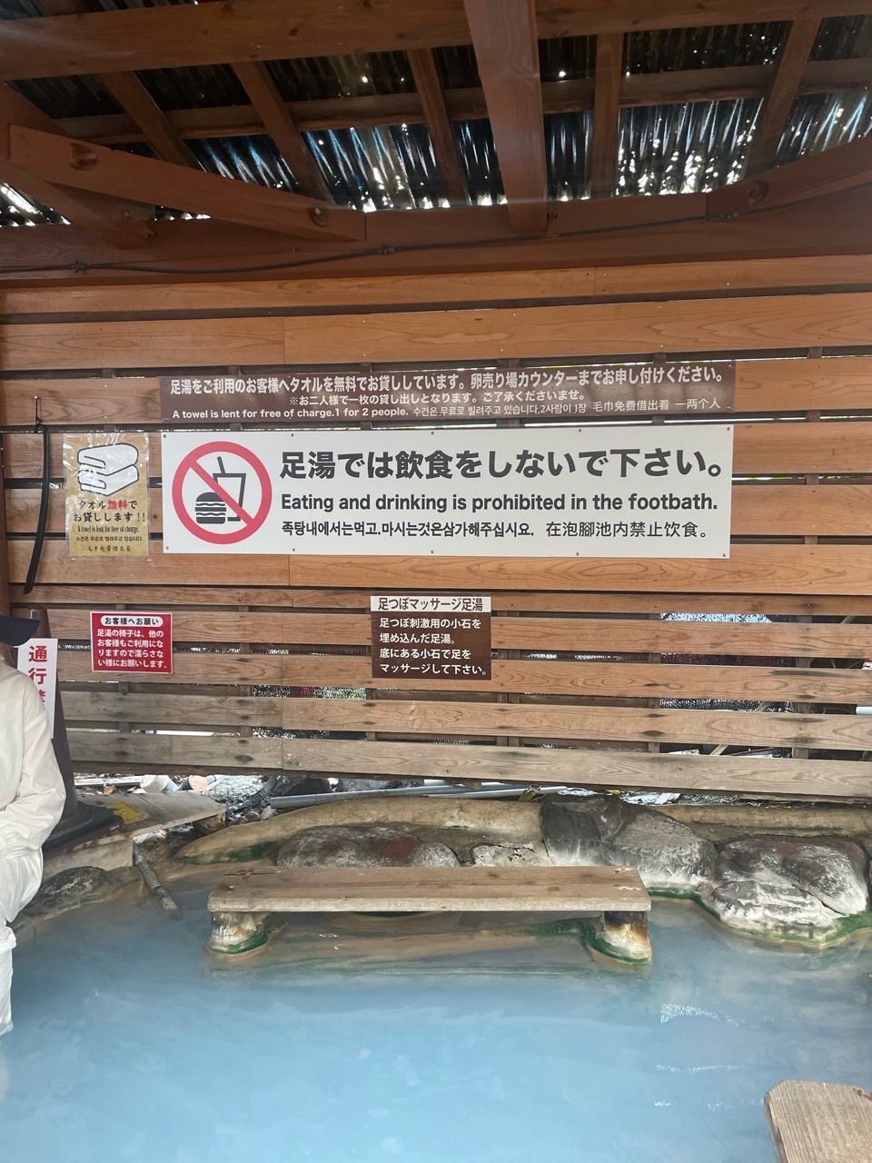 85도 정도의 온천으로 여긴 그나마 좀 나았어요. 물이 투명했거든요. 그래도 청소는 안 하시는지 이물질이 많이 있었답니다. 들어가고 싶게 생긴 물은 전혀 아니었어요. 이곳에선 증기 코로 들이마시기, 마시는 온천 들도 같이 있어요. 온천수를 마실 수 있도록 컵이 비치되어 있고 한편에 증기가 나와 이걸 흡입하면 코로나에도 좋고 기관지에도 좋다 하는 데 전 하지 않았습니다. 역시나 유황냄새가 많이 나더군요.