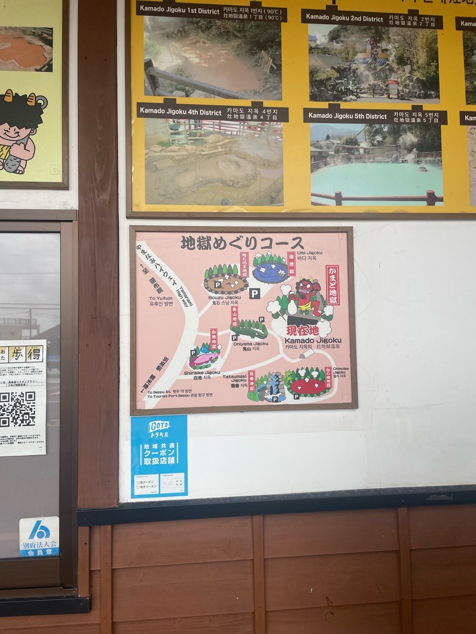 저흰 일정이 빡빡하여 벳부를 다 둘러보진 못하고 제일 유명한 가마도 온천을 방문하기로 했어요.