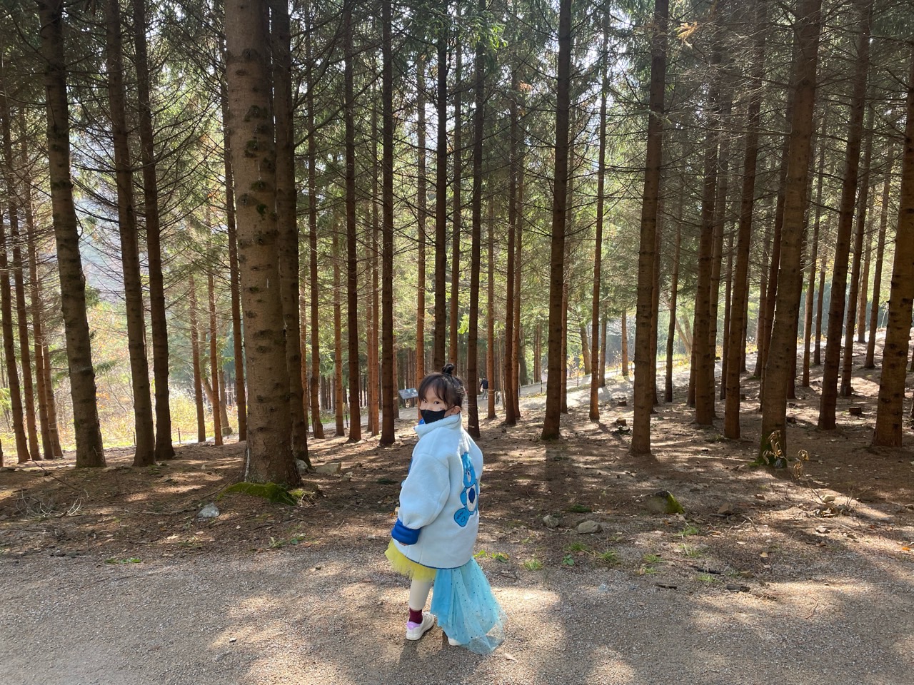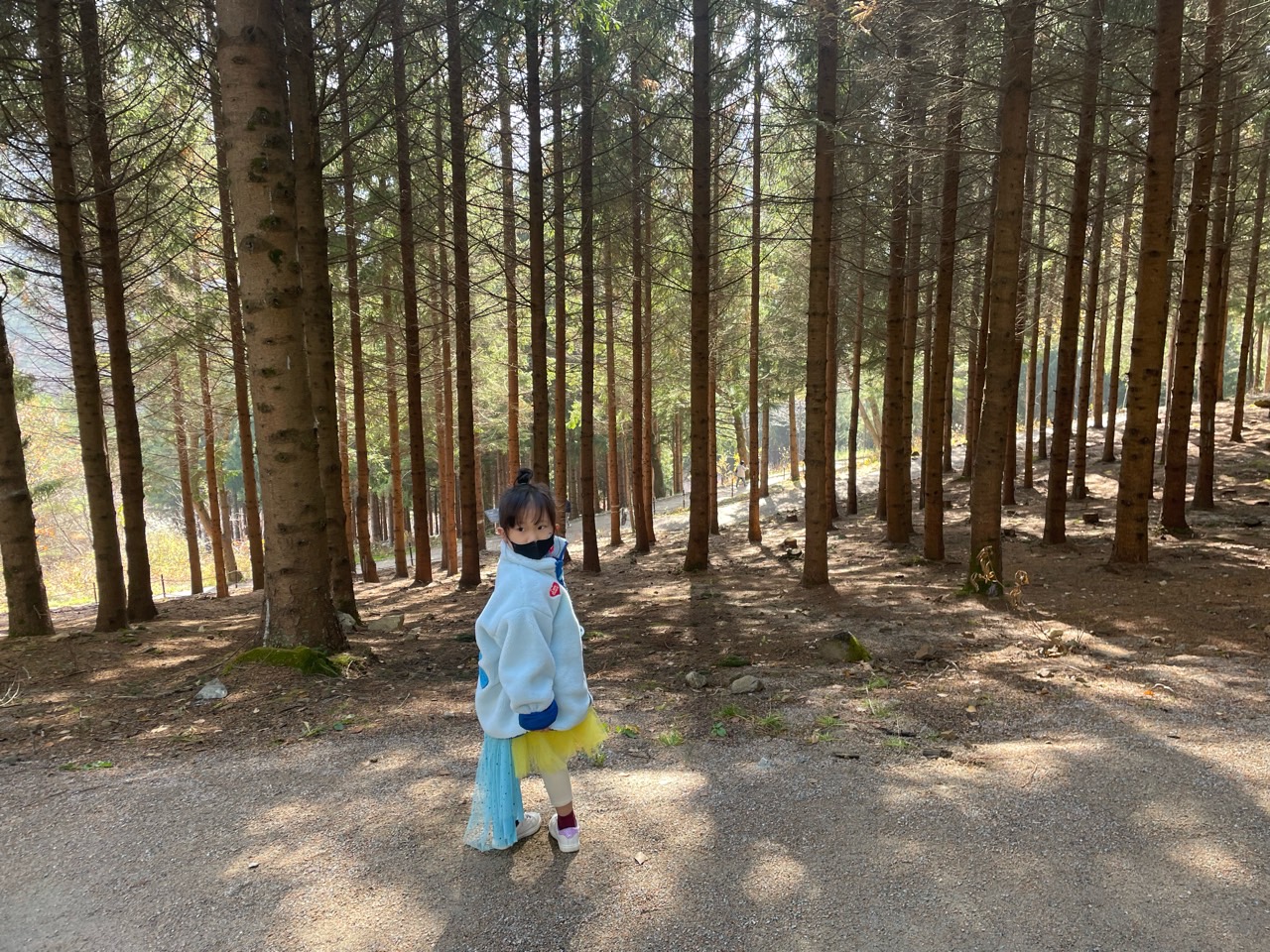 안녕하세요. 하율맘입니다. 오늘은 강원도 여행의 둘째 날 평창을 후딱 둘러보고 속초를 넘어가야 했기에 용평리조트 안에 있는 애니포레를 가보기로 했어요. 사실 이름만 보고 토끼 요런 거 있는 줄 알고 리조트 내에서 한참 찾았지요. 보니 리조트에서도 차를 타고 10분 정도 가야 있더라고요. 해지면 문 닫기에 일찍 다녀오는 걸 추천해요. 저는 숙박팩에 같이 포함되어 있어 무료였습니다. 일반 손님들은 참고해 주세요. 애니포레라고 네비를 찍으면 친절하게 입구까지 안내해 줍니다. 매표소에서 티켓을 구매하고 가는 방법은 모노레일을 타거나 지프차를 타는 것입니다. 모노레일은 3대 정도가 왔다 갔다 하며 운행하고 지프차도 그 정도 되는 것 같았어요. 요금은 어차피 같으니 저는 지프차를 타는 것을 추천드려요. 모노레일은 아주 아주 아주 아주 느립니다. 뒤로 미끄러지지 않을까 싶을 정도의 경사를 아주아주 느리게 가기 때문에 좀 답답하더라고요. 그렇지만 생긴 것은 깜찍합니다. 전 갈 땐 모노레일 올 땐 지프차를 탔어요. 입구를 지나면 이렇게 멋진 가문비나무 군락이 펼쳐진답니다.