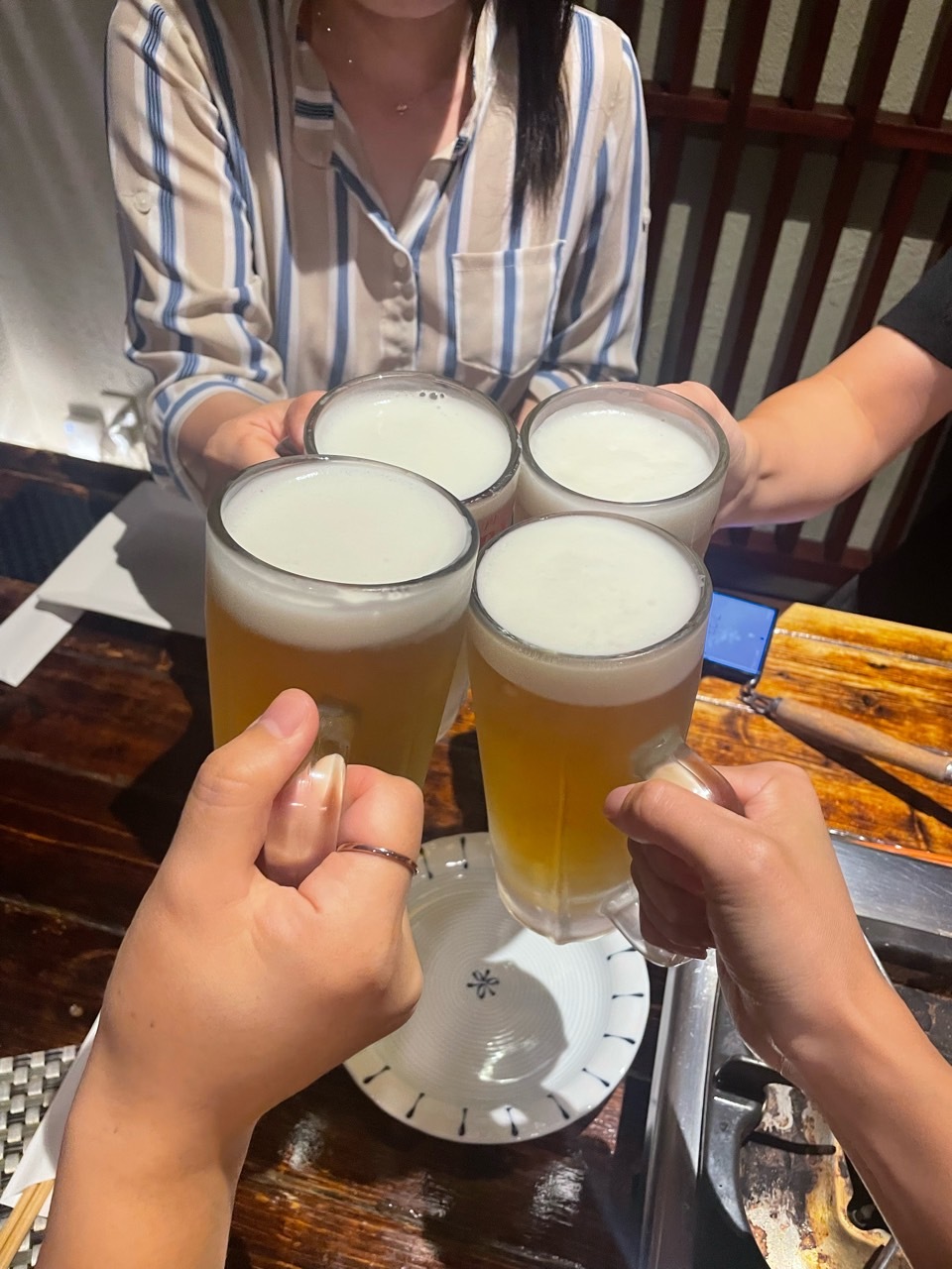 말고기 육회는 처음 먹어봤는데 제 스타일은 아니네요. 너무 질겨요. 전 씹다 뱉어.. 답니다. 육회보단 진한 맛이지만 너무 질겨서 별로였어요. 후쿠오카의 9월은 여전히 습하고 더웠어요. 내내 돌아다니다 먹는 시원한 생맥주는 정말 꿀맛이었습니다. (맥주가 제일 맛있었던 것 같기도 하네요.^^)