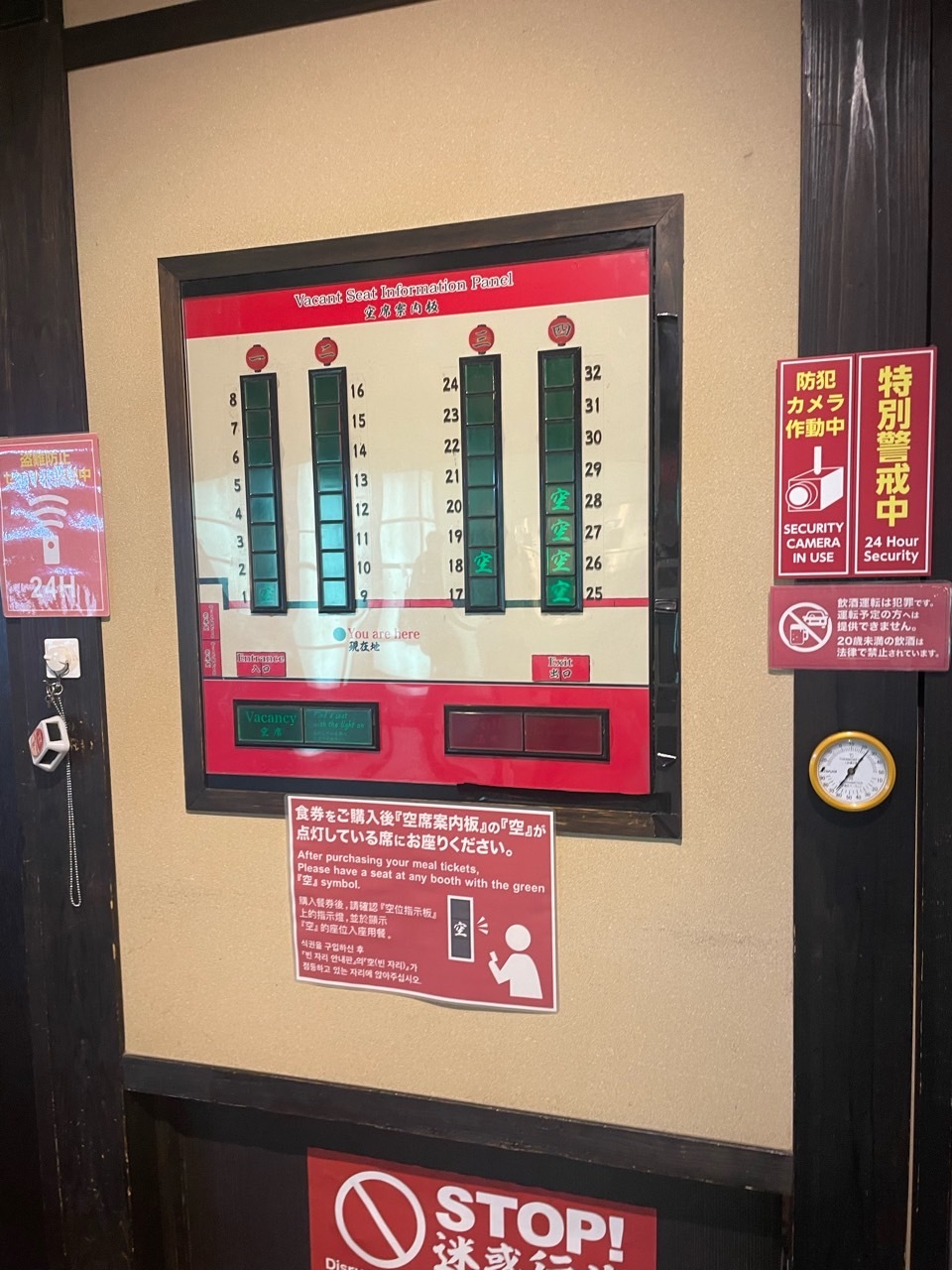 이렇게 아까 자판기에서 받은 티켓과 함께 테이블 위에 올려두면 직원의 손이 나와 살짝 가져간답니다. 신기하고 이상한 느낌이에요. 이런 거 경험하러 많이 가시는 듯합니다.