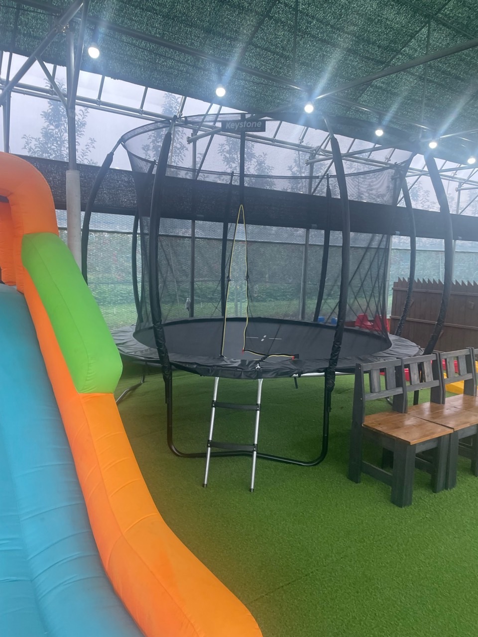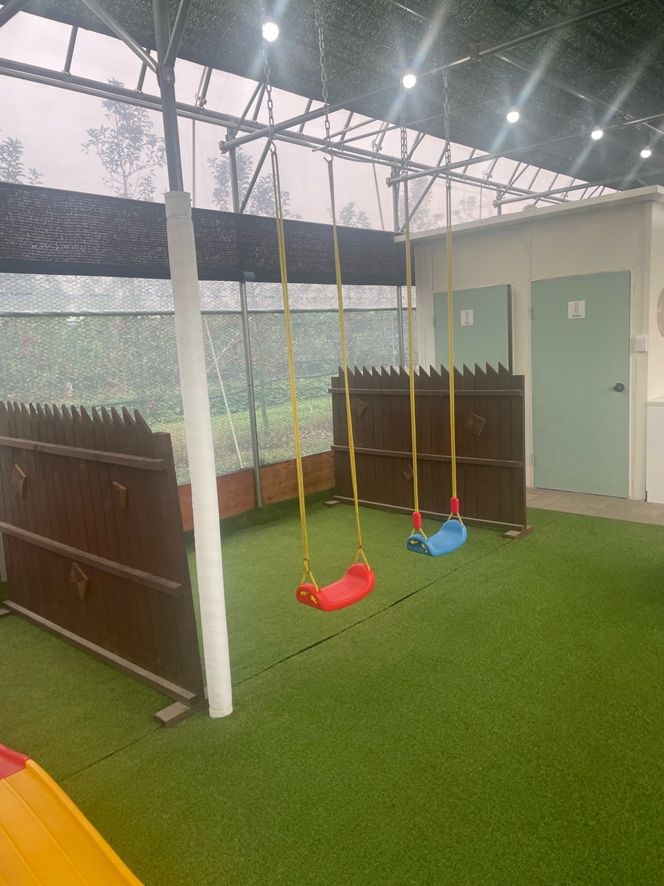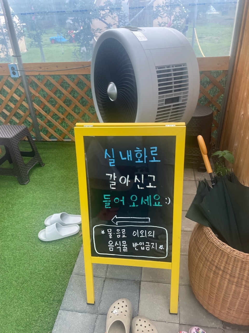 저흰 비가 많이 온 관계로 대부분을 실내 놀이터에서 보냈습니다. 안에는 아이들이 놀 수 있게 잘되어 있었고 부모님이 쉴 수 있게 의자도 잘 준비되어 있었어요. 다만 에어컨은 없어서 세상 꿉꿉했지만 못 참을 정도는 아니었어요. 그래도 비 오는 날이나 한여름엔 덥지 싶습니다. 에어컨은 없고 큰 선풍기가 있었답니다.