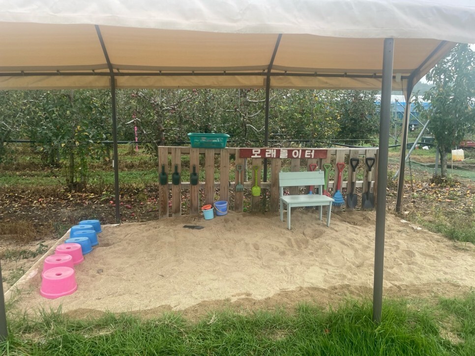 아마 이곳이 포토존이에요. 아이니 농원에 오면 이곳에서 꼭 사진을 찍더라고요. 저흰 비가 와서 제대로 찍진 못했지만 사진만 봐도 아주 좋아 보이네요. 아이들에게 수확의 기쁨과 농장에서의 즐거움을 느낄 수 있는 기회인 것 같아요. 사실 이거 하러 여기 오는 거잖아요?
