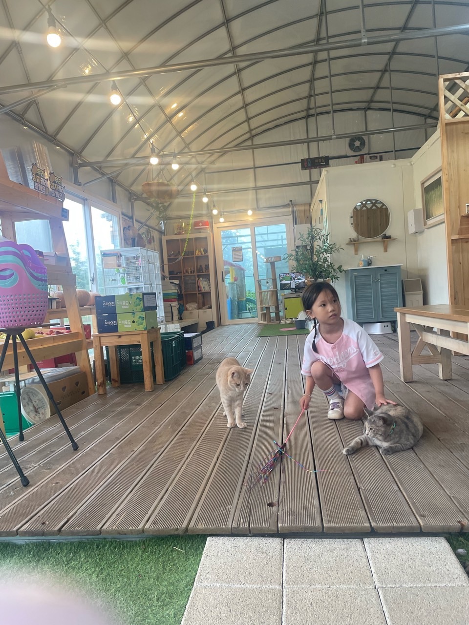 이날 비가 와서 주로 실내에서만 지냈더니 하율이가 기억하는 건 고양이와 잘 논 것과 실내 놀이터에서 신나게 논 것뿐이네요. 그렇지만 좋은 게 좋은 거니깐요. 맛있는 대추 사과도 먹었고 과일 따기도 해봤고 고양이랑도 잘 놀았고 골든 사과의 맛있음도 알았고 좋았답니다. 비록 날씨가 좋았다면 더 좋겠지만 그건 어쩔 수 없으니깐요. 봄, 가을에 방문하면 아주 좋을 듯싶네요. 기회가 된다면 아이들과 함께 방문해 보세요. 주말은 예약하기가 조금 힘들답니다.^^