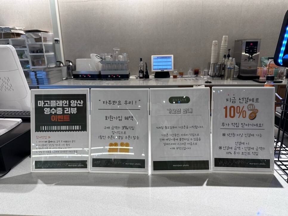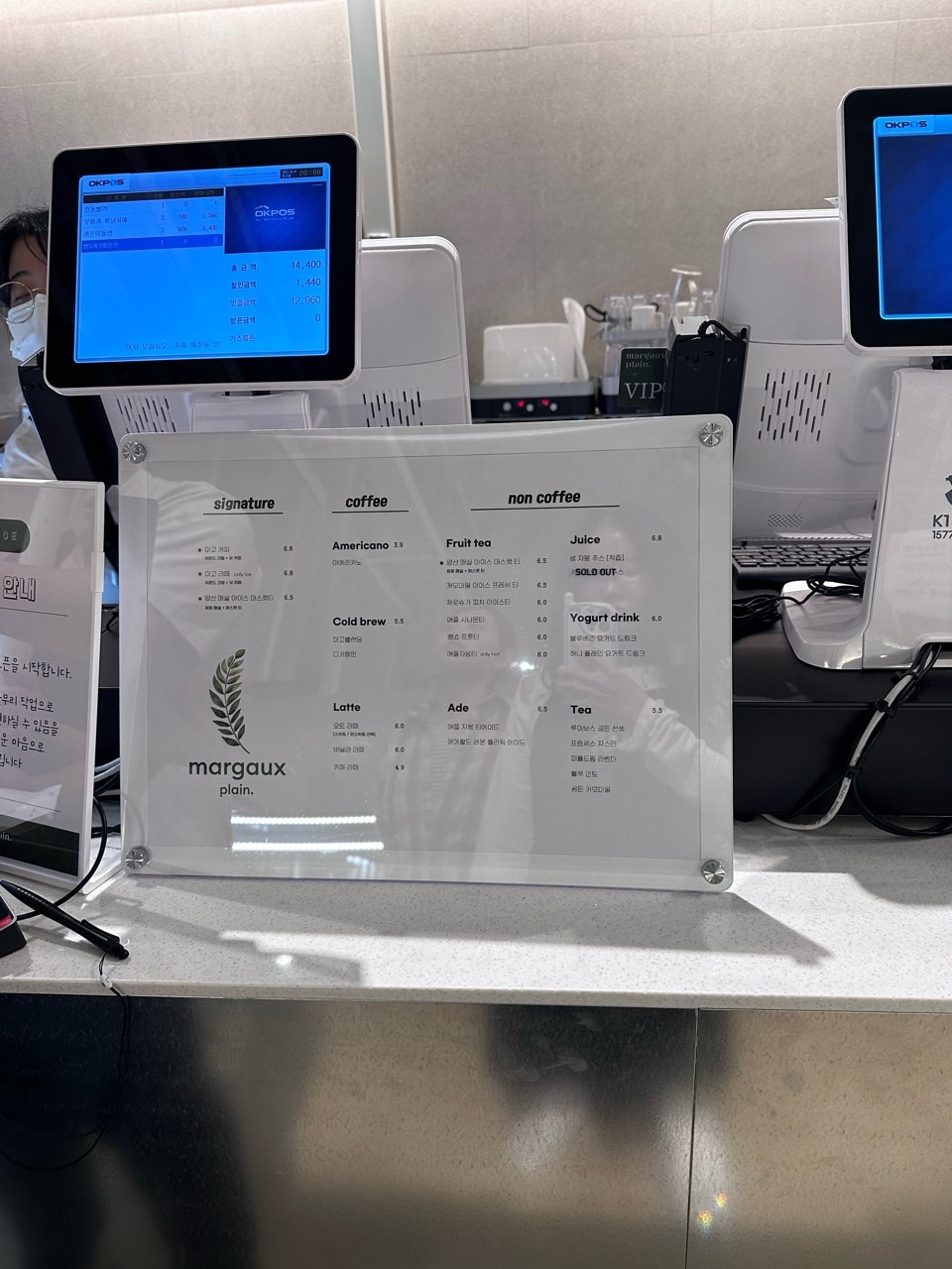 음료의 가격은 저렴한 편입니다. 대형 타 카페에 비하면 아메리카노는 확실히 저렴한 듯싶습니다. 빵이 왜 저렇게 비었을까요? 제가 갔을 땐 저녁 8시쯤이었고 내부엔 손님들이 아주 많았어요. 이렇게 빵이 비었을 거라곤 생각 안 한데. 정말 많은 분들이 빵과 함께 커피를 마시고 계셨어요. 특히 주말 저녁이라 그런지 가족단위의 손님들이 아주 많았답니다. 그래서 소금 빵을 먹어보지 못했어요.