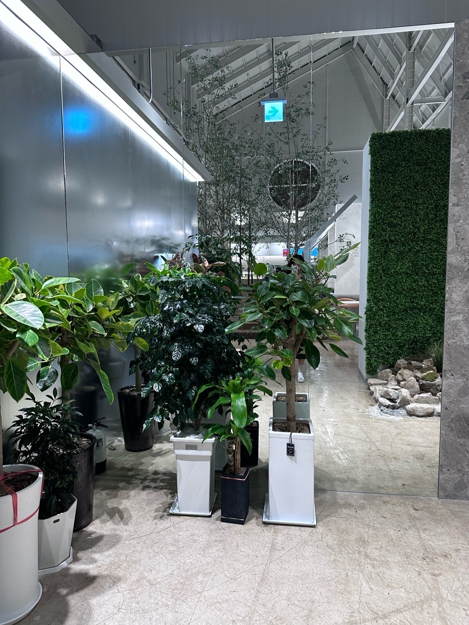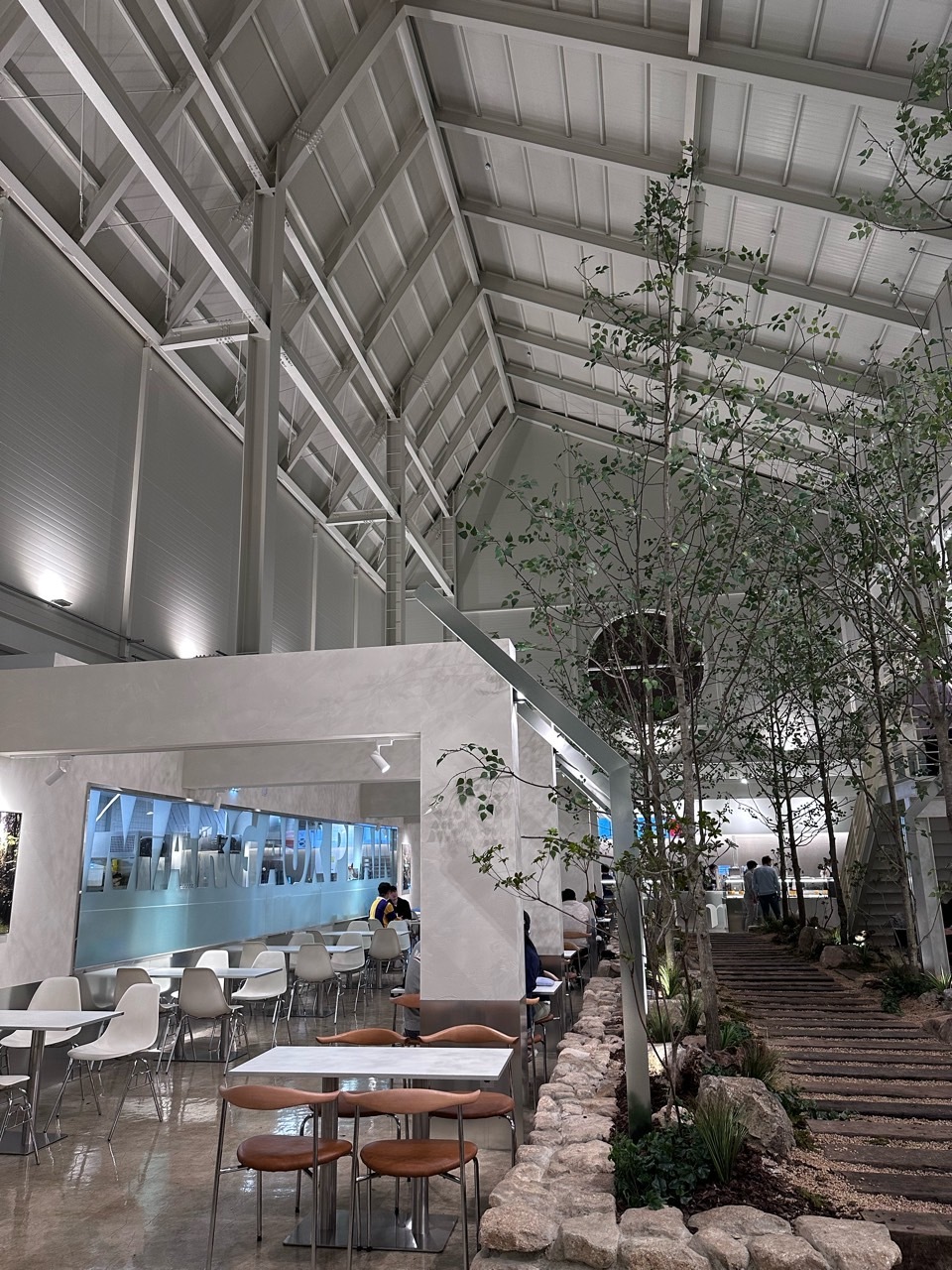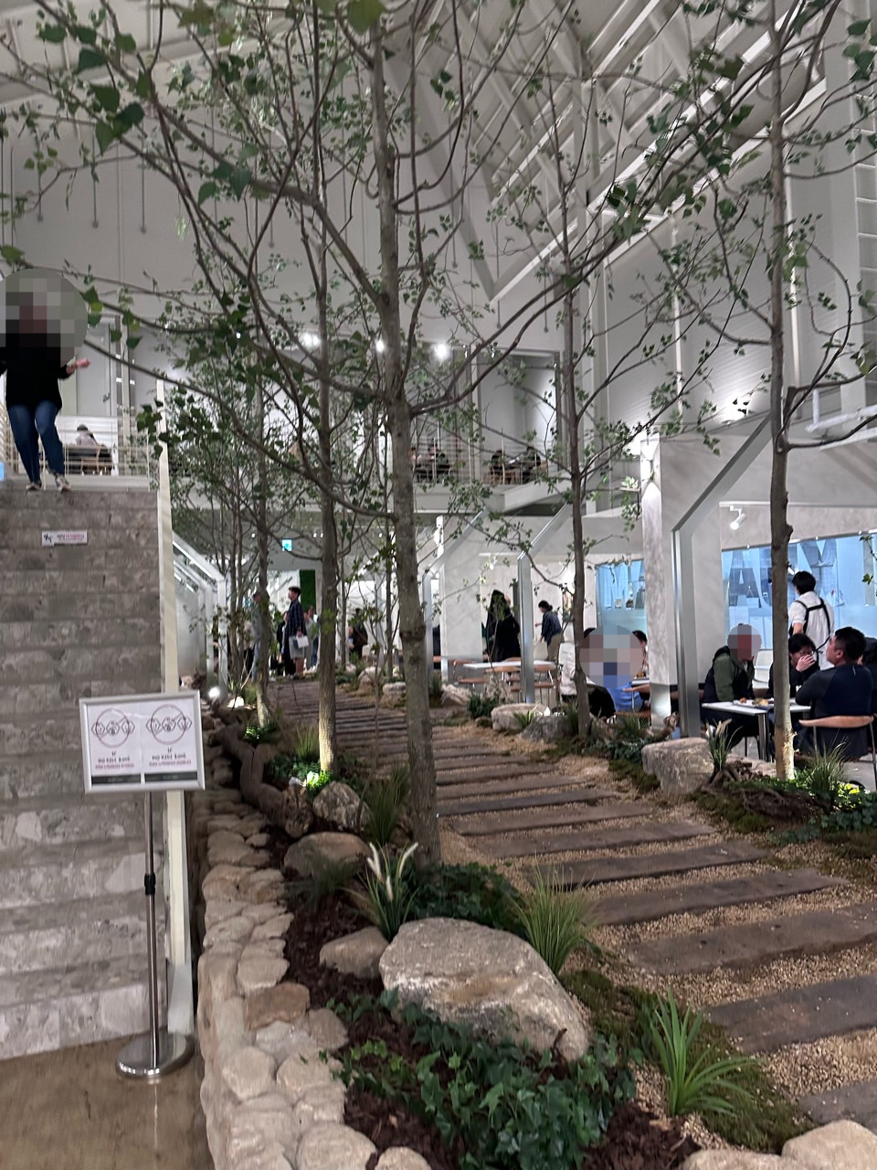카페 메인에 위치한 인테리어입니다. 이곳에서 사진을 찍기도 하고 걸어 다녀 보기도 했어요. 카페 내부에 이렇게 큰 길이 있는 건 또 신기한 것 같습니다. 마치 웨딩홀에 온 듯한 느낌도 들었어요. 층고가 높고 버진 로드처럼 아주 길게 있고 초록한 나무와 풀들이 너무 이뻐 이곳에서 결혼한다면 야외 결혼식 느낌도 들 것 같네요.