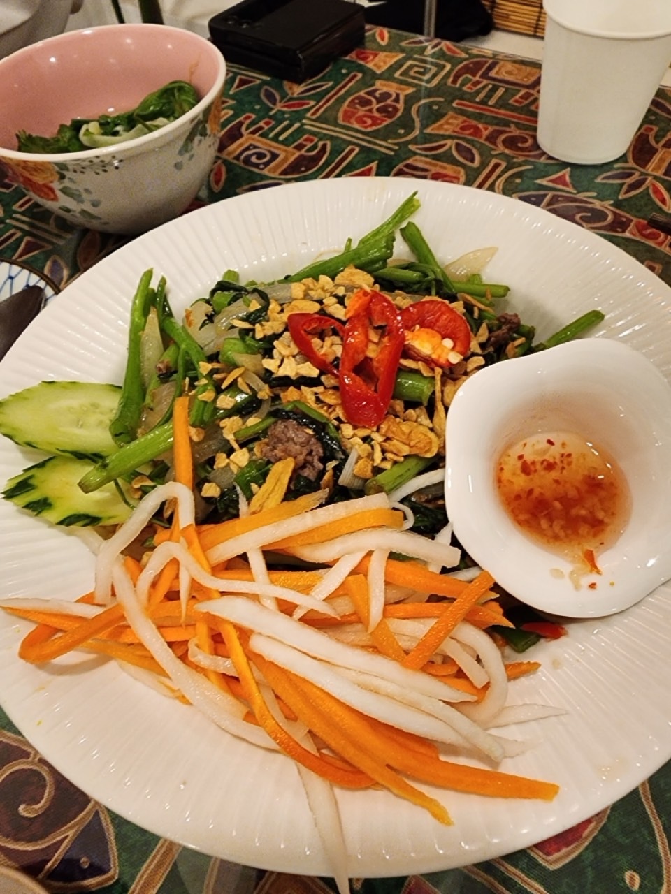 처음 가본 베트남 전문 음식점이었어요. 현지에서 먹어보지 못해 비교할 대상은 없지만 맛은 있었어요. 한국인의 입맛에 크게 부담 없고 고소하고 달달하며 맛있었습니다. 음식들이 전체적으로 야채가 많아 소화하기 편하여 깔끔했습니다. 가끔 입맛 당길 때 오면 좋을 것 같아요. 베트남 음식 좋아하시는 분들은 오시면 좋아할 것 같네요. 베트남 현지와 맛이 다른지 알려주세요! 전 베트남은 아직 못 가봤답니다.^^
