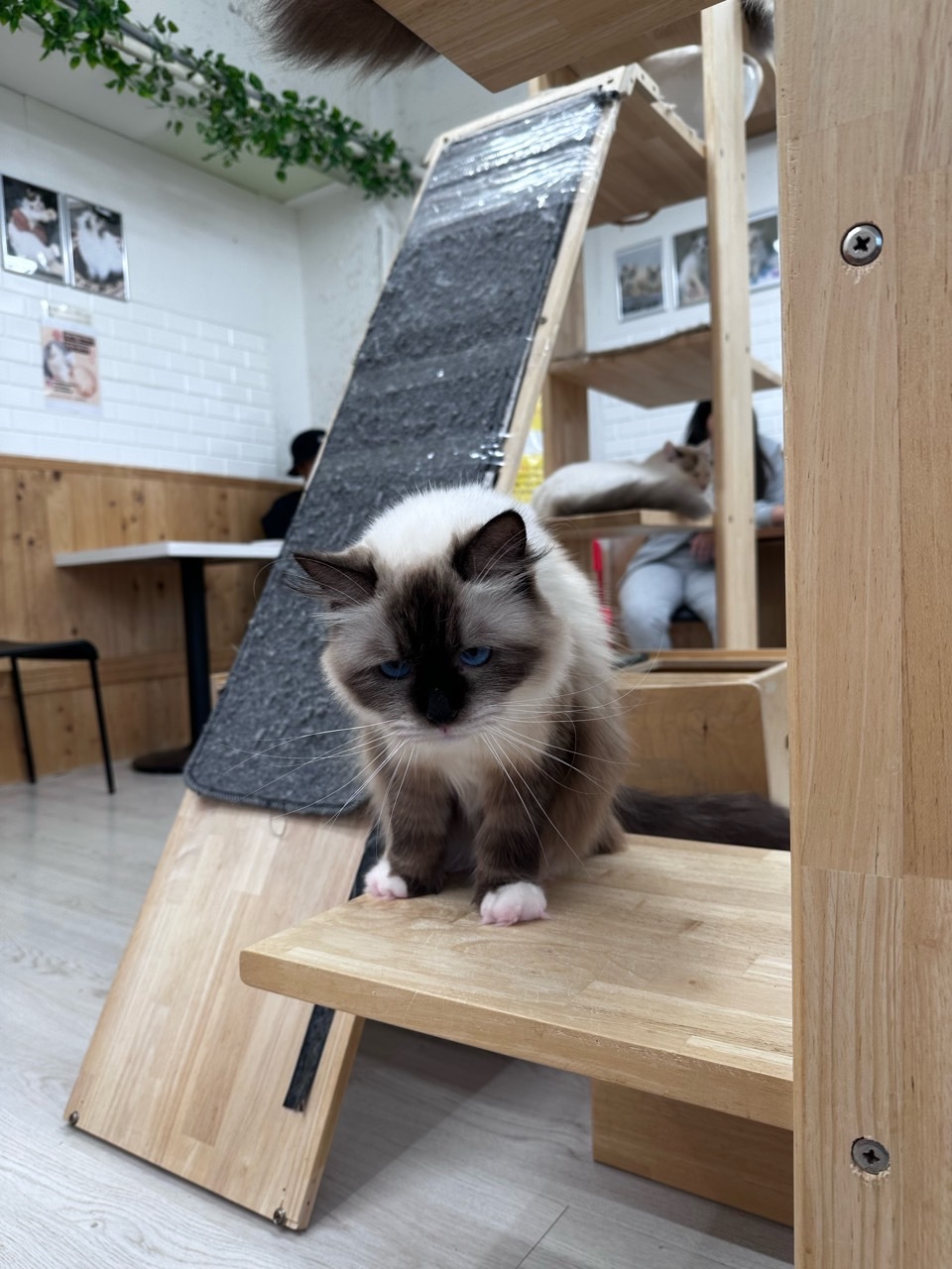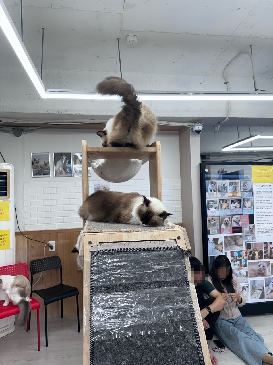 고양이 자체는 너무 귀여웠어요. 고양이를 좋아하시는 분들이라면 너무 좋을 것 같아요. 가격도 저렴했고 평일 시간대로 잘만 고른다면 조용하게 고양이를 보고 갈 수 있을 것 같아요. 주말엔 조금 피해주셔야 할 것 같네요. 그리고 어린아이에게는 맞지 않는 것 같습니다. 아이들이 통제가 잘 안되고 고양이가 마음대로 안되니 오히려 아이의 기분만 더 안 좋아지더라고요. 아예 키우든지 해야지 카페는 맞지 않는 걸로 해야겠네요.