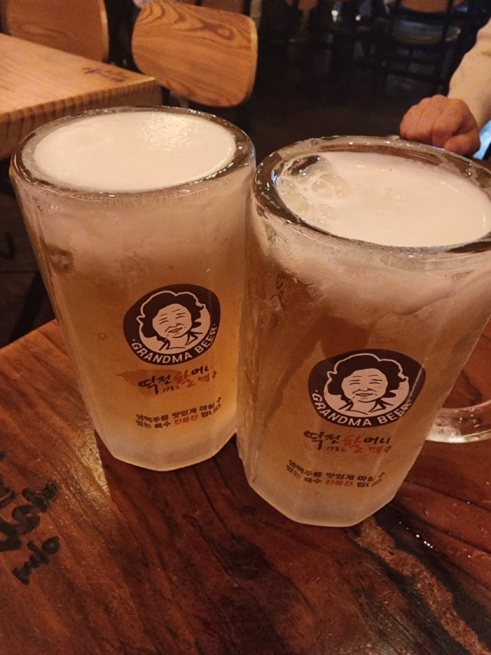 캬. 사진만 봐도 침이 꼴깍 넘어가요. 역전 할머니 맥주잔은 얼음 잔이에요. 그래서 정말 차갑게 먹을 수 있답니다. 다만 금방 녹으니 처음에 꼴깍꼴깍 많이 마셔야 해요. 그래서 그런지 저흰 500cc를 시키지 않고 300cc를 자주 시켜요. 여러 잔을 마십니다. 계속 시원하게 먹을 수 있도록요. 물론 돈이 조금 더 나오겠지만 그래도 나가서 먹으니 최상의 맛으로 먹고 싶어요. 그리고 또 하나 좋은 점은 300cc가 있어서 좋아요. 맥주를 잘 못 마시는 분들은 맥줏집 가면 500cc가 부담스러울 때가 있거든요. 여긴 300cc를 팔아서 가볍게 마실 수 있어 딱 좋답니다.
