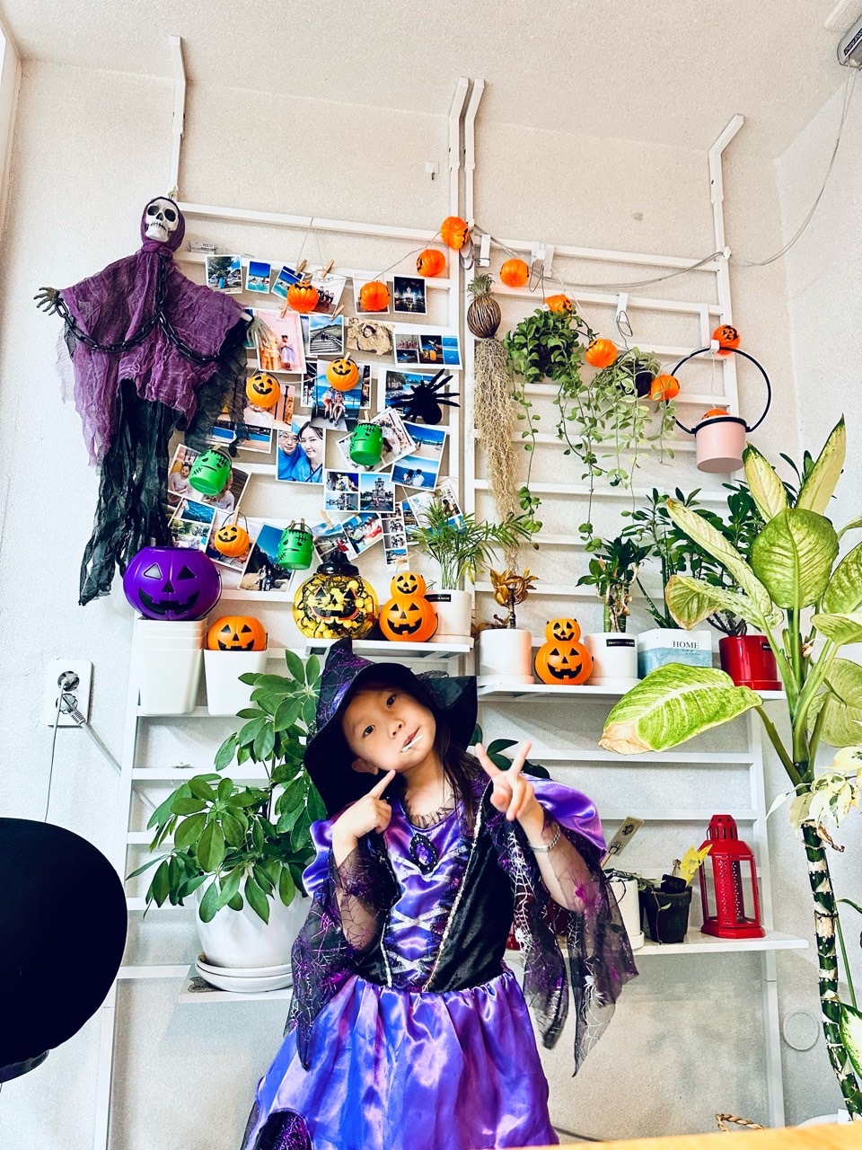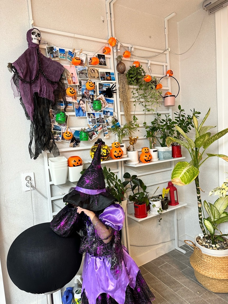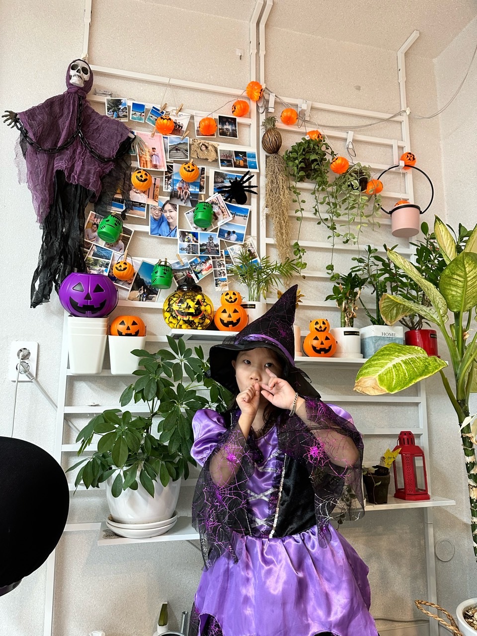 그러나 작년에 우리나라에서 끔찍한 사고가 있었고 그로부터 1년이 지났습니다. 이번 할로윈은 할로윈이 할로윈 인지 모르게 조용히 지나가고 있습니다. 저희도 안챙기려 하다가 작년에 할로윈행사를 했던 마녀의상이 있어 집에서 조촐하게 지내 봤어요. 행사라고 할 것도 없이 저녁먹기 전에 마녀옷을 입고 Trick or treat!라고 외치며 방문을 두드리고 초콜렛을 얻고 하며 보냈어요.