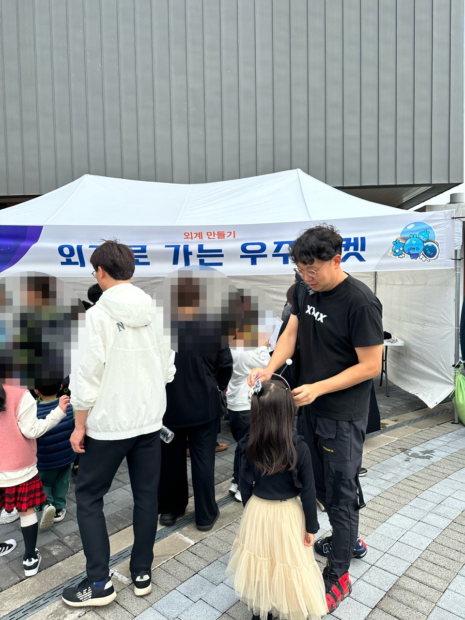 이름들을 너무 잘 지어 놓으신 것 같아요. 외계인 변장 교실 하면서 아이들에게 예쁜 페이스 페인팅을 해 주고, 로켓을 만들어 실험해 보고 외계인 교신 장치라 해서 머리띠도 만들어 보고 숨은 그림 찾기도 해 보았어요. 부스가 아주 많아 아이들이 오래 기다리지 않아도 금방 할 수 있어 더 좋았습니다. 관리요원들도 아주 많았고요. 무엇보다 이 축제에 신경을 아주 많이 쓴 모습이 보여 너무 좋았습니다.