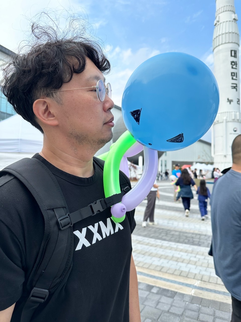 이 모든 체험부스 중 가장 오래 기다려야 하는 외계인 풍선입니다. 저희는 40분 정도 기다린 것 같아요. 기본 1시간이라 하셨던 것 같아요. 이렇게 많은 아이들이 외계인 풍선을 달고 있었어요. 자꾸 보니 왜 이리 귀엽나요. 지금도 저희 집에 나란히 장식되어 있어요. 기다린 보람이 있네요.