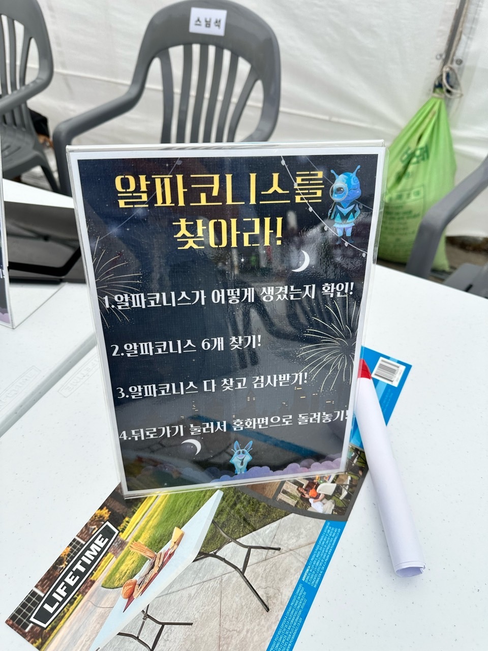 스파게티 면과 마시멜로로 멋진 우주선도 만들고 면봉으로 별자리를 만들고 외계인 변장 시리즈로 마스크도 만들어 보고 등등 제가 여러 축제를 가 보았지만 아이들을 위해 이렇게 다양하게 체험부스를 설치한 곳은 처음 보는 것 같습니다. 모든 부스들이 아이들을 위한 거였어요. 그리고 이 모든 부스는 체험료 0원입니다. 무료예요. 재료비만 하더라도 꽤 될 것 같은 데 정말 너무 괜찮죠?