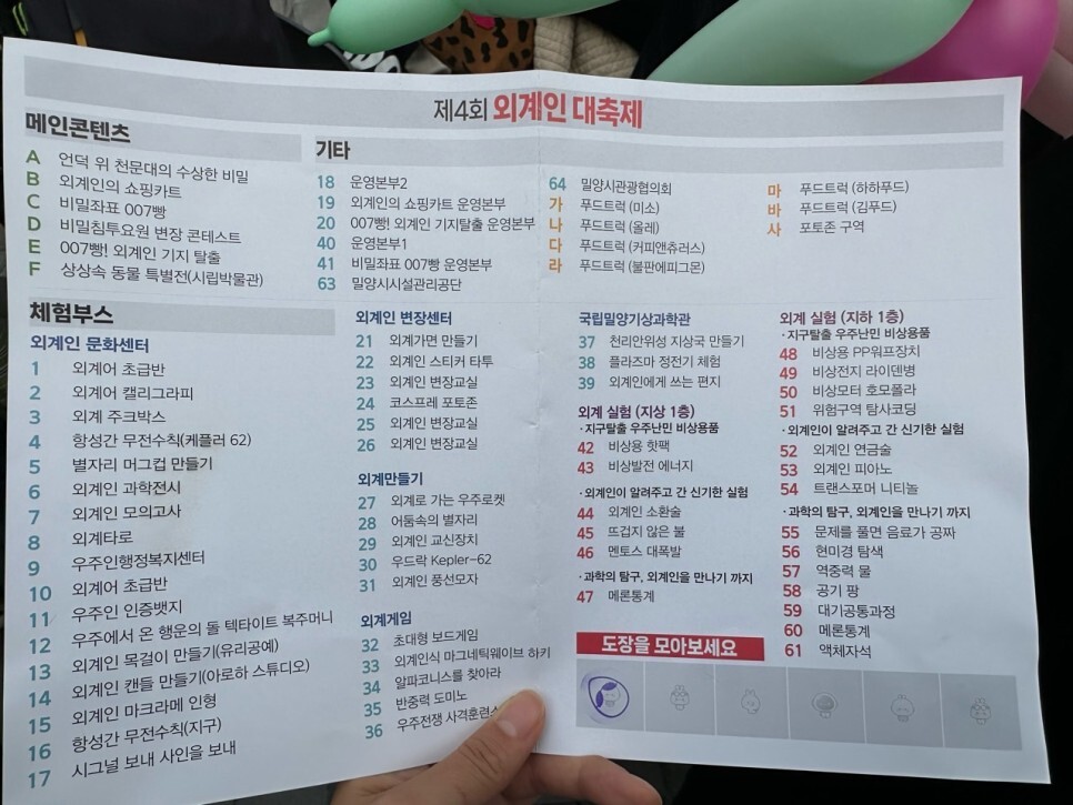 외계인 대축제라 해서 신기해서 왔는데 아이들을 위한 행사를 많이 하고 신경 쓰는 모습이었습니다. 다양한 과학실험을 통해 아이들이 배울 수 있도록 해 놓으신 것 같아요. 무엇보다 체험부스가 많아 아이들이 무척 재밌어할 모습입니다. 이렇게 체험 부스를 보니 저희가 체험한 건 반도 안 되는 것 같네요. 초등학생 아이 듣ㄹ과 오면 무척 좋아할 것 같습니다.