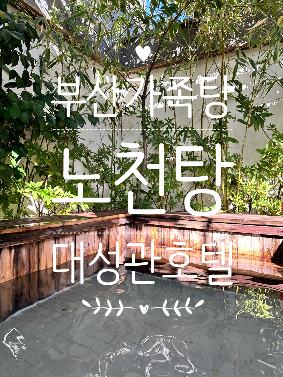 제가 간 곳은 온천장의 대성관이라는 호텔의 가족탕입니다. 온천장은 워낙 유명하니 다들 잘 아실 거예요. 저도 한 번씩 허심청 자주 가고 좋은 곳이죠. 그런데 가족탕은 안 가봤는데 이번에 보니 여기가 노천탕이 있더라고요? 제가 또 노천탕을 엄청 좋아합니다. 운치 있고 분위기 있고 비까지 오면 금상첨화죠. 대성관 호텔의 룸 중 노천탕은 vip 룸만 있고 겨울엔 예약하기가 힘들다는 후기가 많았어요. 그래서 바로 전화했고 다행히 저는 운 좋게 대실 할 수 있었어요. 숙박, 대실 모두 호텔로 전화하셔야 합니다!