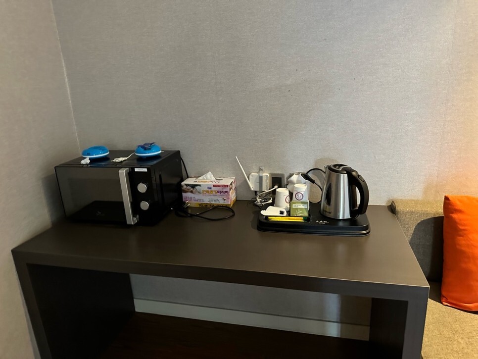 전자레인지도 객실 내 비치되어 있어 너무 좋은 것 같습니다. 보통 공용공간에 1대 두기 마련인데 객실 내 있는 걸 보니 와아. 멋져요. 부산에 안 살았으면 여기 숙박해도 좋을 것 같습니다. 숙박은 27만 원이라 하고 vip 룸 예약은 호텔로 전화해야만 한다네요. 겨울엔 예약하기 힘들다고 하더니 정말 그럴듯싶어요.