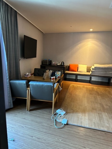 와아. 객실이 너무 깔끔하고 쾌적하게 잘 되어 있었어요. 숙박하고 싶을 정도입니다. 방도 크고 무엇보다 제일 좋은 건 전기장판이 있어요!!!