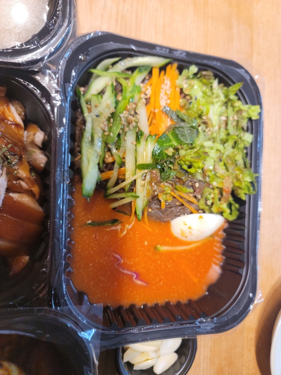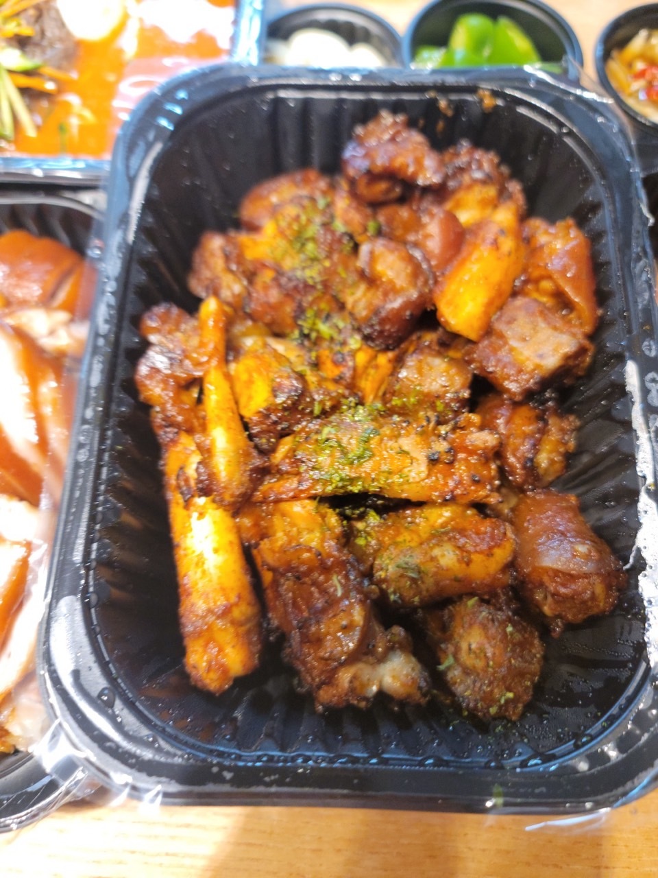 불족+ 족발 중자 구성입니다. 가격은 4만 원이에요. 요즘 같은 고 물가에 너무 괜찮죠? 그냥 족발 중자를 시키면 뼈까지 있는 데 불족과 함께 시키니 뼈는 없습니다. 그러나 결코 적은 양이 아니에요. 불족 안에는 족발과 꼬리 그리고 떡 2~3개가 들어가 있습니다. 떡 양이 많으면 실망할 뻔 해는 데 고기로 꽉 차 있어 더욱더 좋습니다.