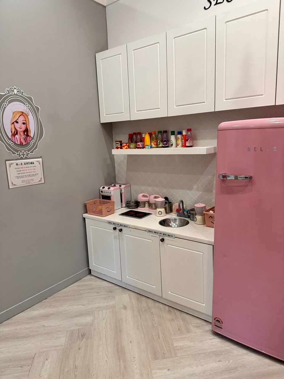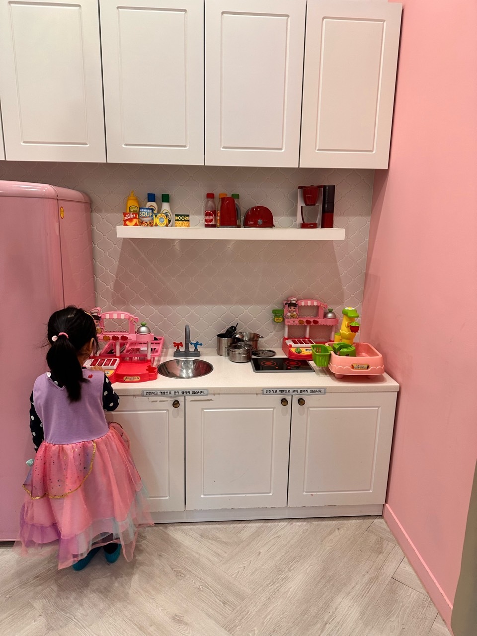 막상 들어가 보니 크게 달라진 건 없네요. 기존에 있던 것들은 다 있어요. 편백 놀이, 정글 짐, 또봇, 여자아이들이 제일 좋아하는 부엌 놀이 등 크게 변한 건 없습니다. 시크릿 쥬쥬 키즈카페는 중간에 있는 부모님 존으로부터 양옆에 아이들 노는 곳이 있어요. 그래서 앉아있어도 반대편에서 놀지 않는 이상 아이들 노는 모습을 언제든 볼 수 있어요. 그래서 너무 좋은 것 같습니다. 그리고 또 너무 크지 않아 모습이 보이지 않는 반대편에서도 아이들이 부르면 바로 소리가 들려 알 수 있어요.