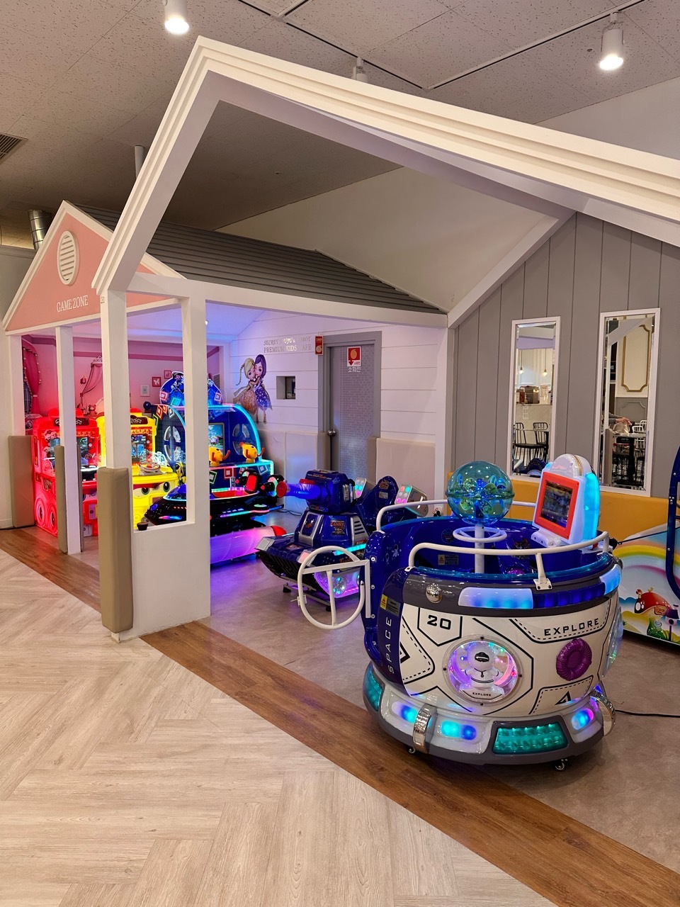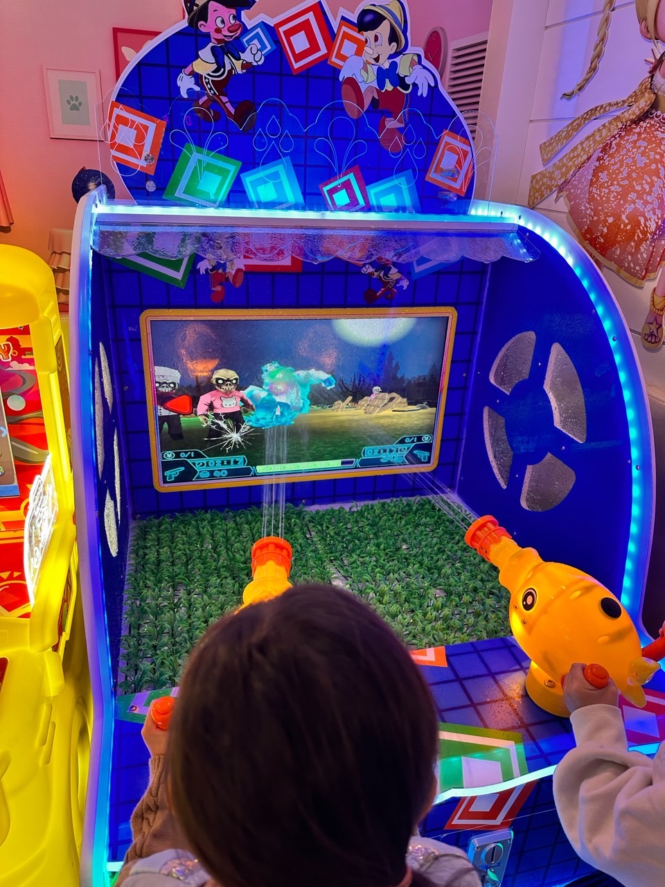 이 게임존은 예전에 영아 존이었던 곳이네요. 바운서와 아기의자 등 있었던 곳이 이제 멋진 게임존이 되었어요. 탈것과 아이들 기준으로 맞춘 오락기 게임들이 아이들을 신나게 만듭니다. 가격도 100원으로 저렴하게 해 볼 수 있네요. 하율이는 자동차 게임과 두더지 게임, 물총 쏘는 게임을 했어요. 아이들이 제일 좋아하는 게임이 바로 물총 게임이네요. 맞추기도 쉽고 실제로 물이 나오니 아이들이 더욱더 재밌어합니다. 이제 아이들이 좀 컸다고 엄마가 도와주지 않아도 게임하는 모습이 기특하네요.
