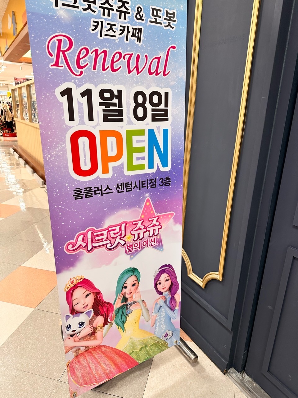 주말 잘 보내셨나요? 요즘 뭔가를 하지 않아도 상당히 피곤한 것이 영 컨디션이 별로네요. 주말에 저는 하율이 친구들과 함께 키즈카페를 다녀왔어요. 하율이는 키즈카페를 잘 다니지 않았어요. 영 돈이 아깝기도 하고 결국은 엄마, 아빠가 놀아줘야 하고 거기에 가면 감기도 잘 걸려 오고 해서 잘 가지 않았는 데 집 근처 홈플러스에 있는 시크릿 쥬쥬 키즈카페는 그래도 조금 간 것 같네요. 그런데 마침 11월 8일에 리뉴얼 되었다 해서 재방문하게 되었어요. 이곳 키즈카페는 여자아이들이 특히 좋아한답니다. 그럼 뭐가 바뀌었는지 볼까요?