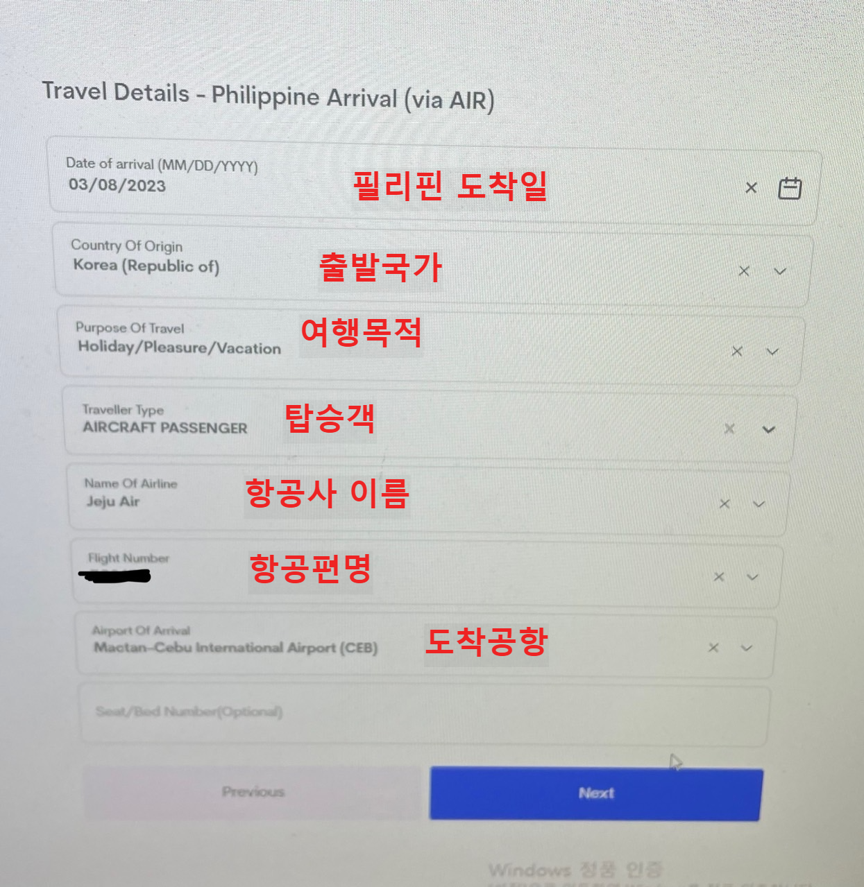 그래서 오늘은 세부 여행 하기 전에 작성해야 할 이 트레블 작성을 해 볼 거예요. 비행기 탑승시간 기준 72시간 전부터 작성 가능합니다. 어린 아이들도 개별작성 해야 한다 하네요. 저흰 어른 2 아이1명이라 총 3번 작성했습니다.