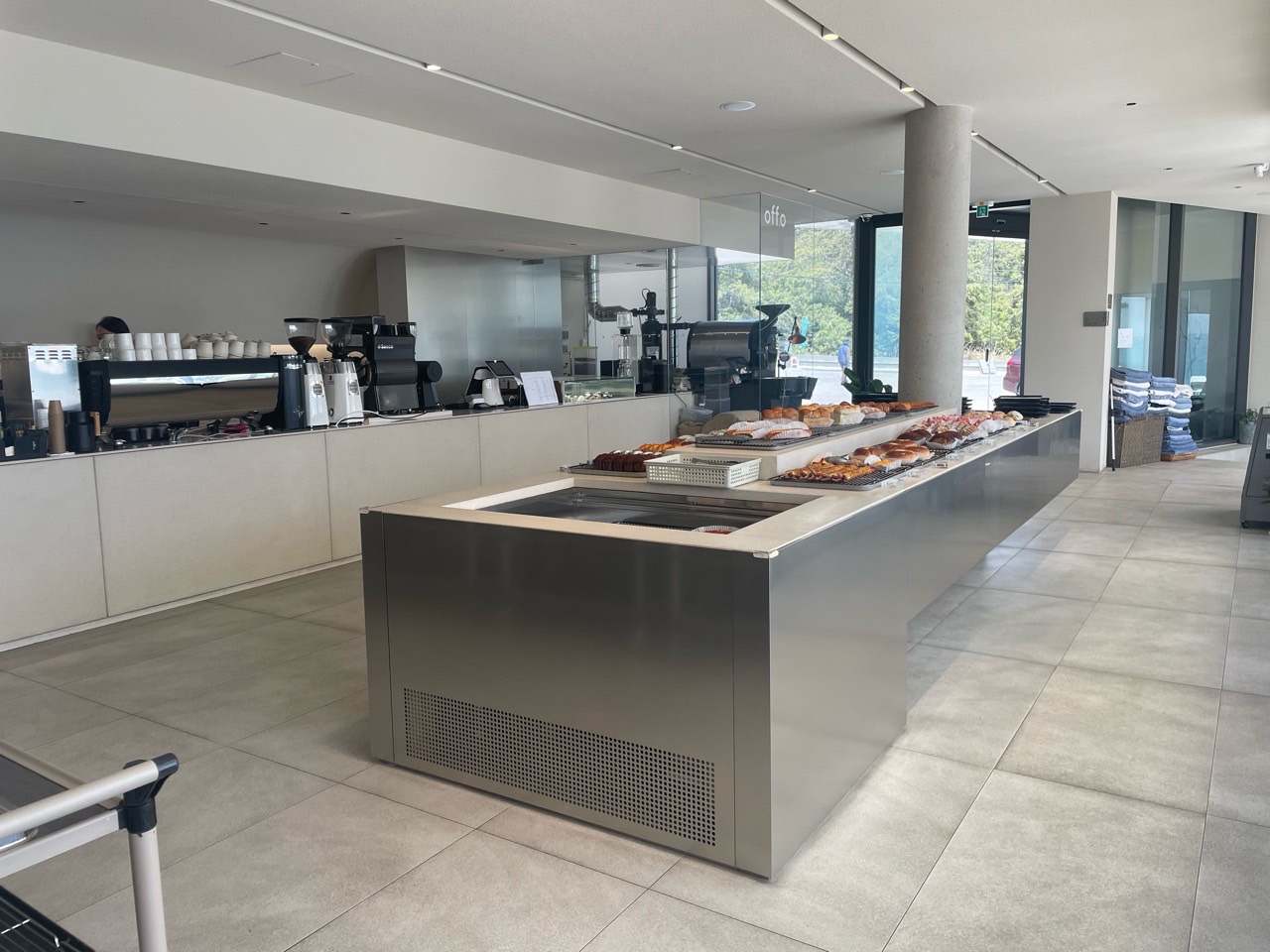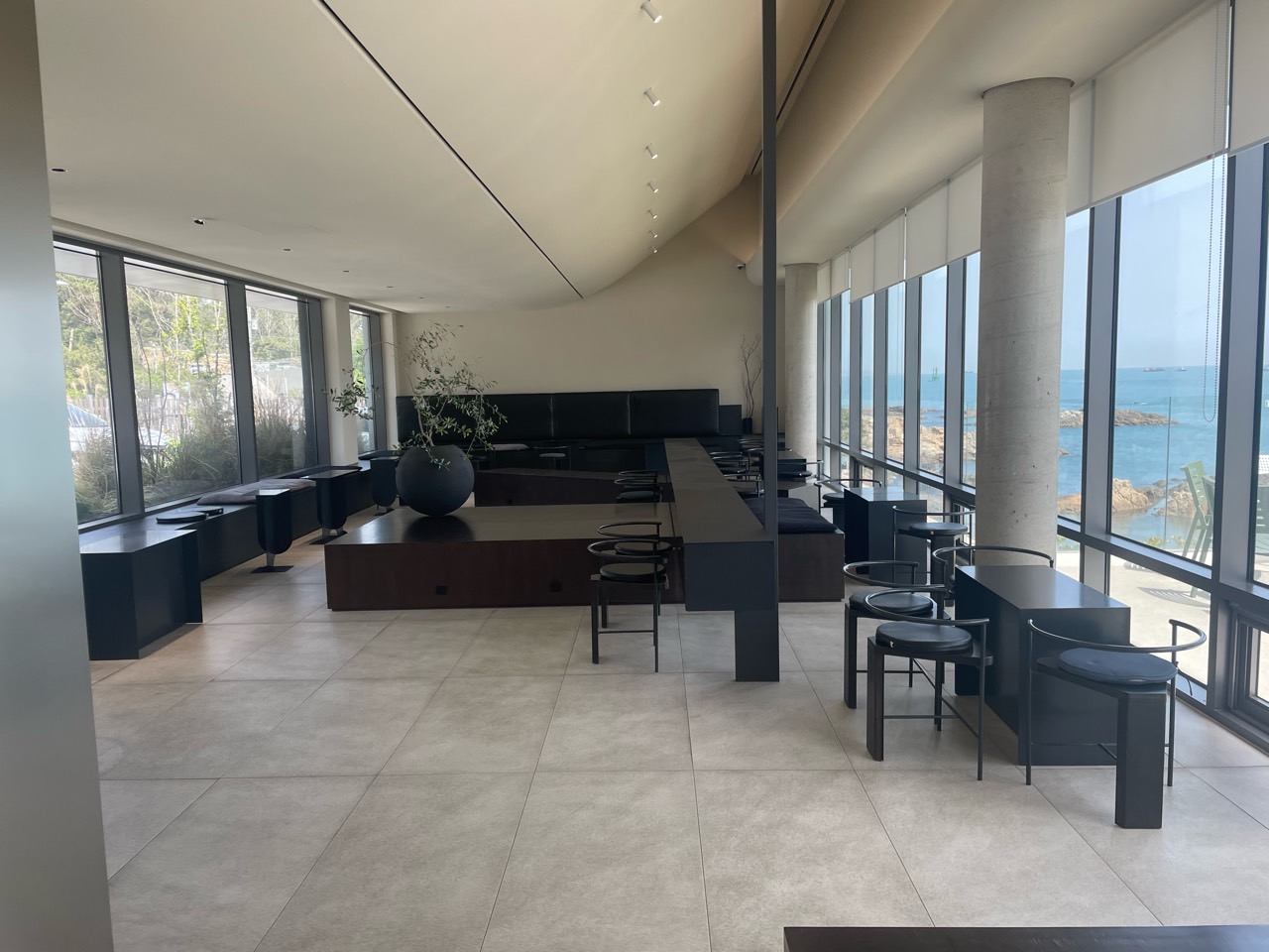 실내 매장은 주문받는 곳을 기준으로 좌, 우로 나뉘며 아주 모던하게 꾸며 져 있어요. 전 평일 오전에 가서 사람이 별로 없을 때 얼른 찍었답니다. 주말엔 아예 자리가 없어요. 실내, 실외 마찬가지로요. 사진 속엔 없지만 지하로 가는 계단도 있어요. 평일이라 그런지 막아놓으셔서 찍지 못하였어요. 주말에만 오픈하는 듯했습니다. 지난번 방문 했을 때 내려가 보았는 데 가든이 보이고 내부는 위층과 비슷했답니다. 다만 오션뷰는 아니었어요. 가든이 주로 보였답니다.