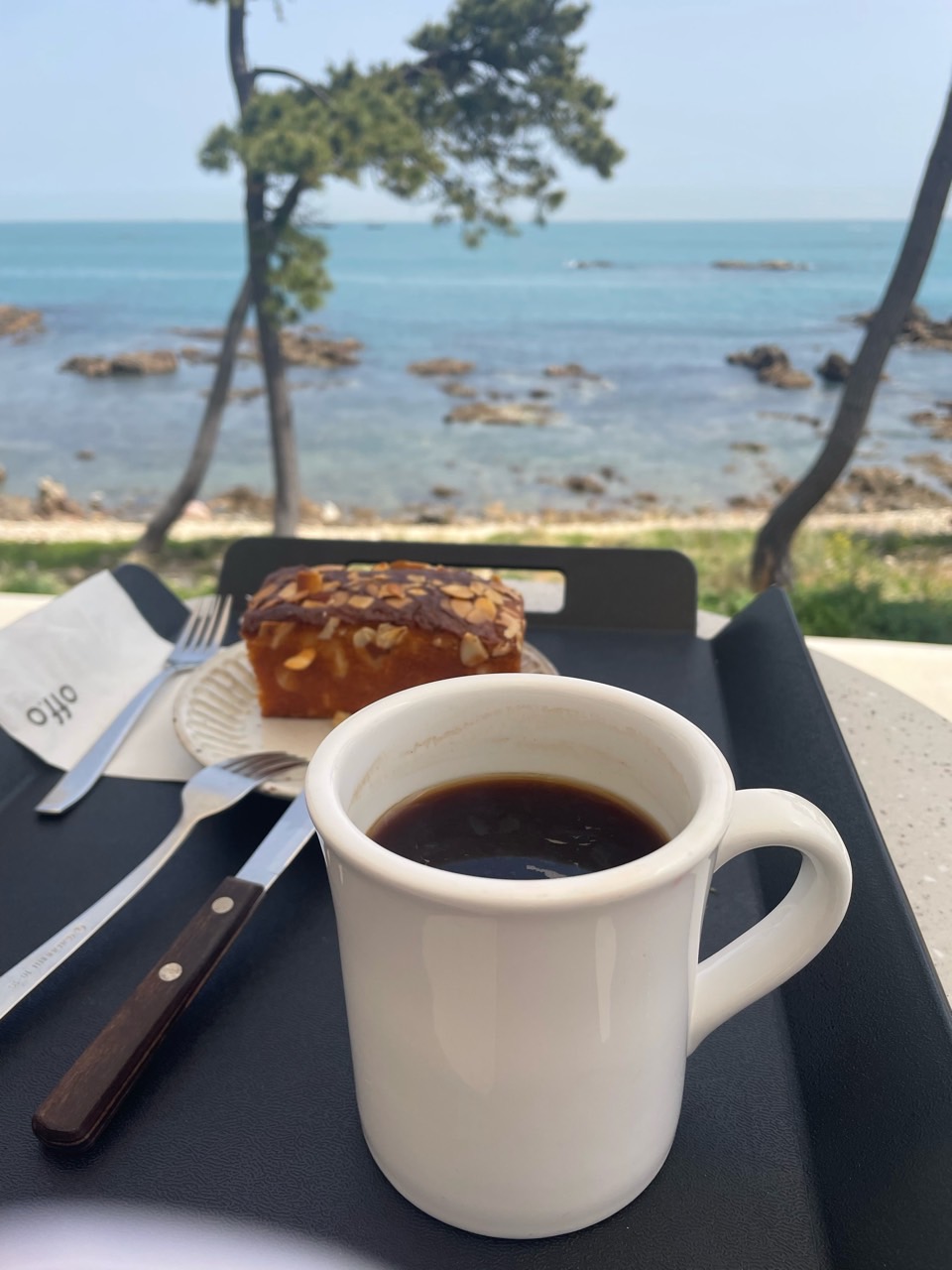 아메리카노와 아몬드파운드를 시켰어요. 역시 너무너무 맛있네요. 뷰와 함께 여유롭게 먹으니 뭘 먹어도 다 맛있겠지만 특히 빵이 아주아주 맛있었네요. 다들 다음에 한번 가보세요. 데이트로 너무너무 좋습니다.