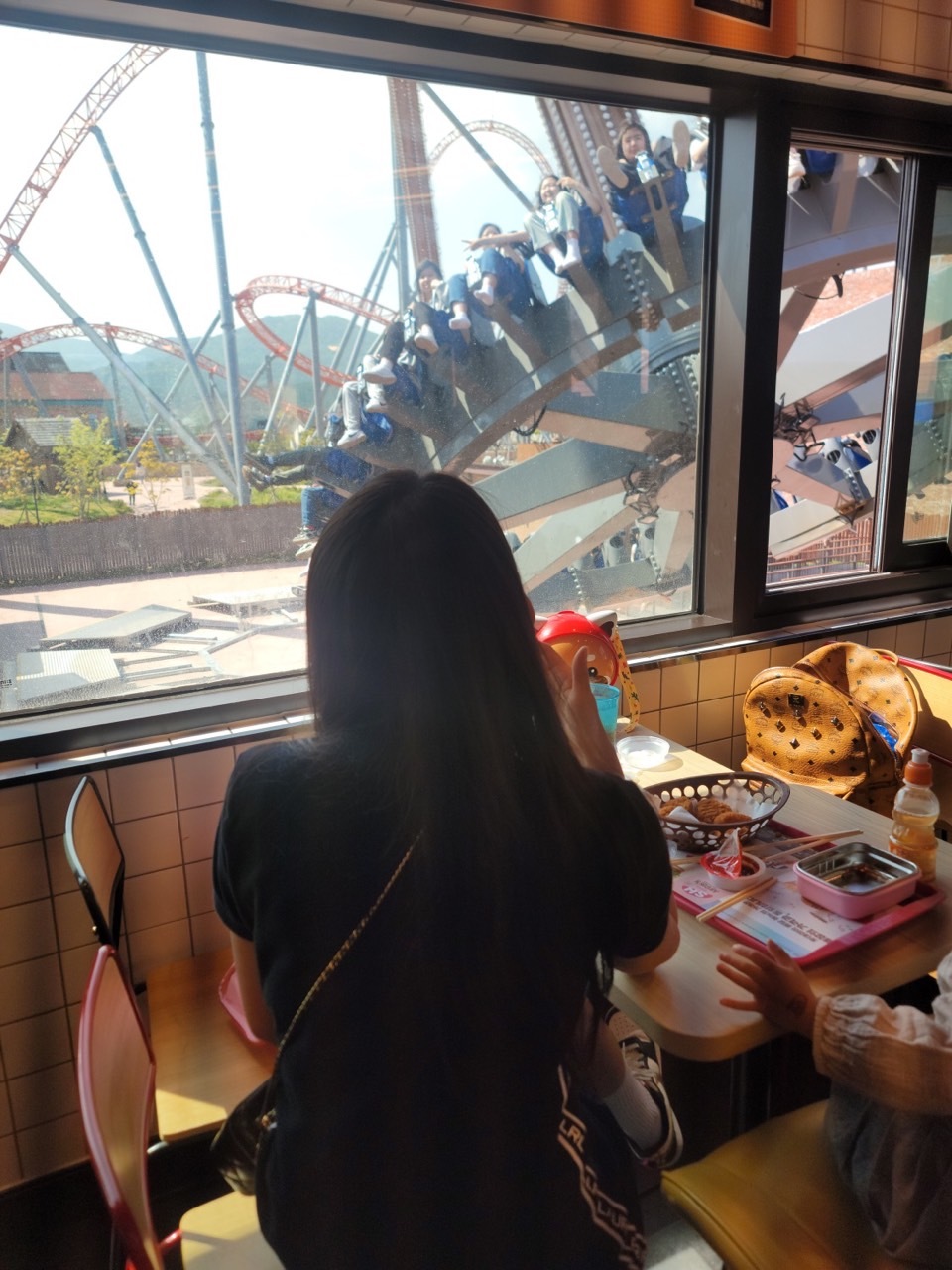 이곳은 식당인데 이렇게 '자이언트 스윙'이 바로 보여요. 탑승한 사람들 까지 전부요.