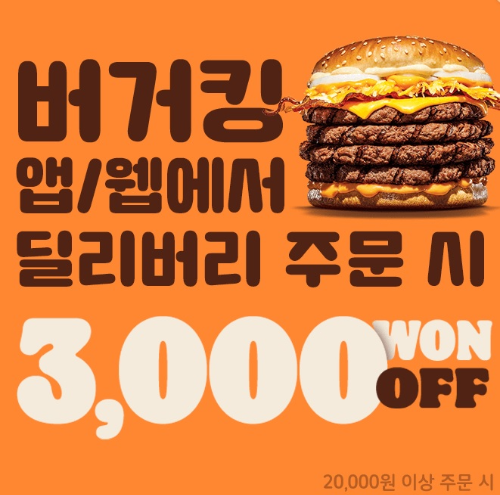버거킹 딜리버리 앱/ 웹 20000원 이상 주문 시 3000원 할인