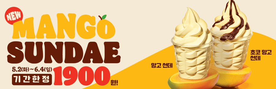 제 취향은 초고망고선데보다는 오리지널 망고선데입니다. 기간은 5월 2일부터 6월 4일까지 1900원에 판매되네요. 이 뒤엔 가격이 오르겠죠? 가격이 매우 좋네요.