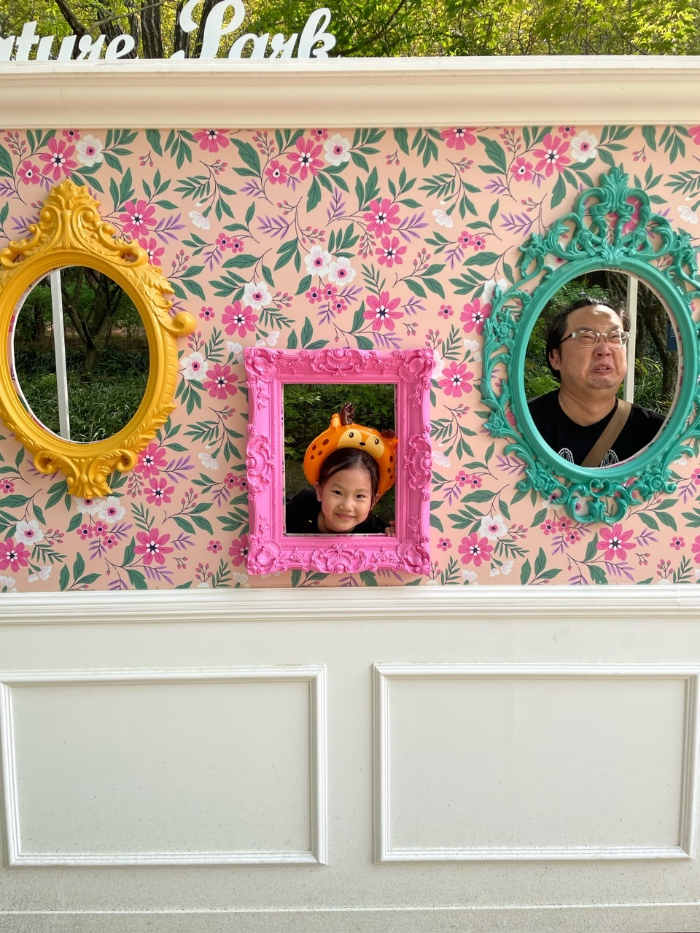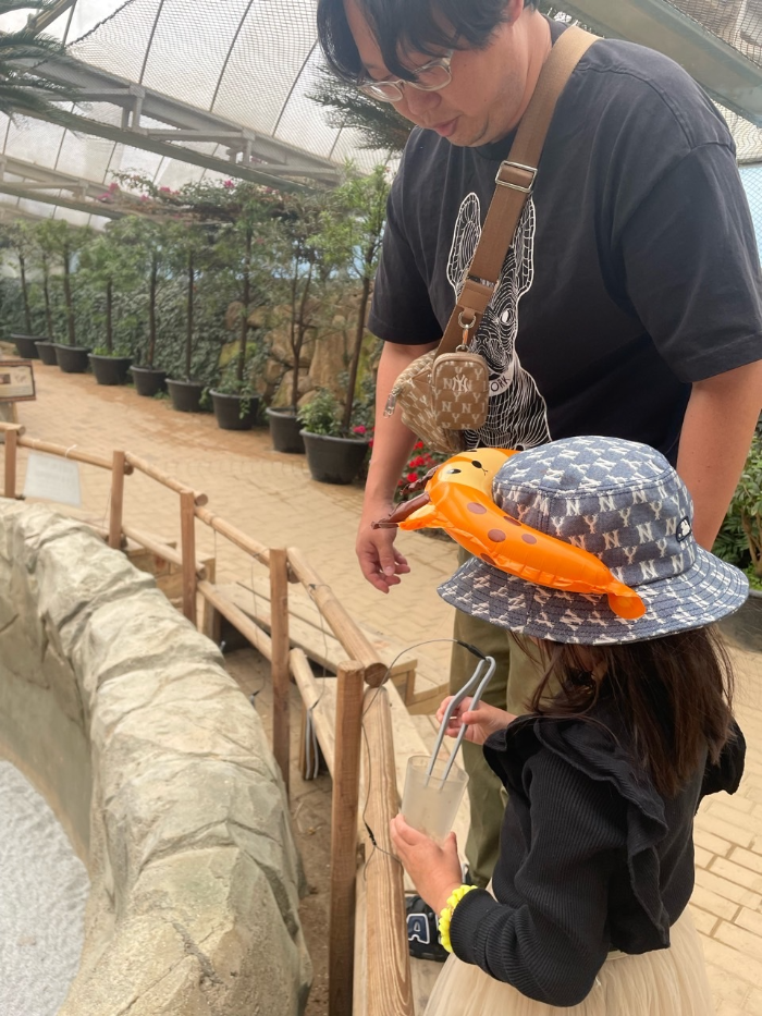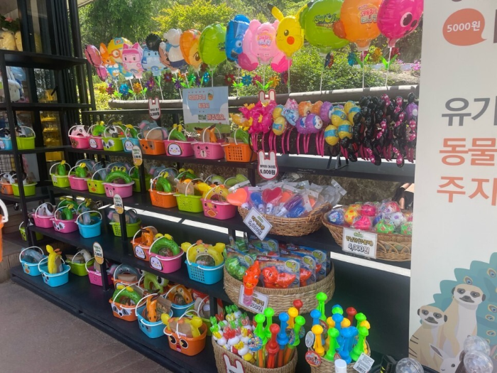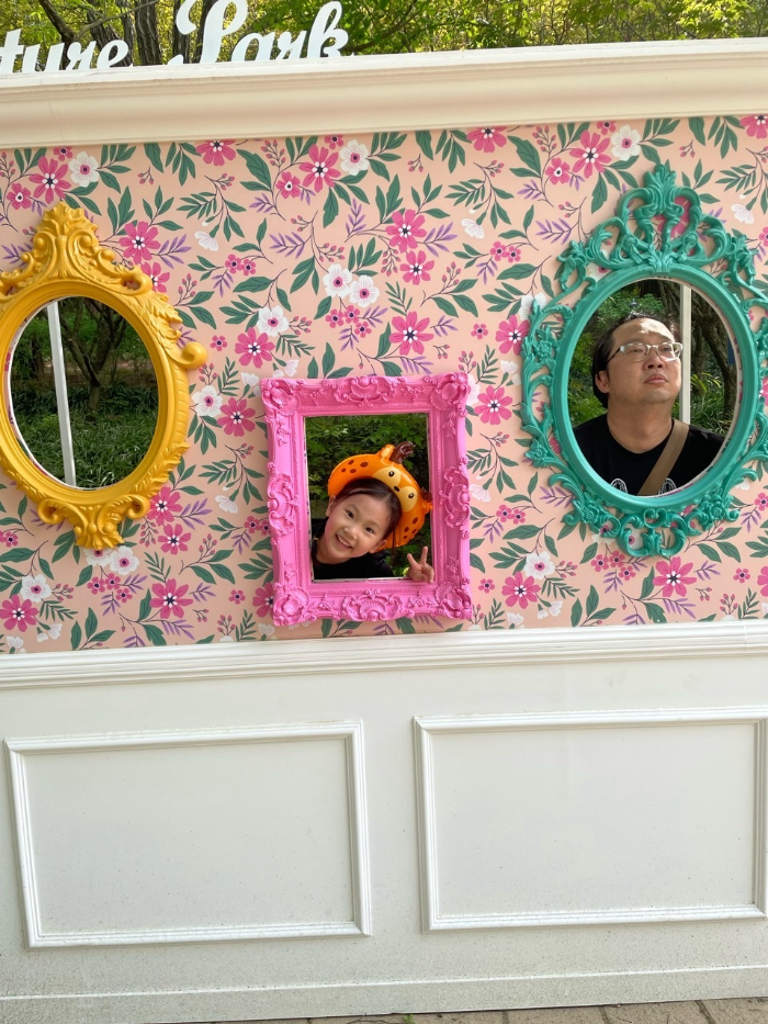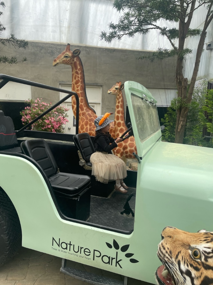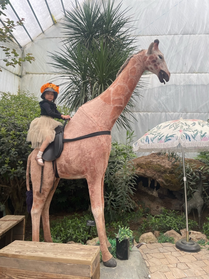 부지가 워낙 넓고 구경할 거리가 쏠쏠하면서 중간중간에 포토스폿으로 이쁘게 잘 꾸며져 있어요. 주말 되면 사람들이 많아 기다려야 할 것 같은 스폿도 전 평일이라 편안히 찍고 왔답니다. 여기서도 사진을 얼마나 찍었는지 몰라요. 저 기린 머리띠는 좀 뺐으면 싶지만 끝끝내 집에 갈 때까지 내내 하고 다녔답니다. 관리가 잘 돼있고 깨끗하고 다 좋은데 딱 하나, 입구에서 머리띠는 이렇게 교감키트에 판매하니 대부분의 아이들이 구매를 하겠죠?? 안 하고 다니는 애들이 없어요. 즉 동물원 군데군데 머리띠들이 있어요. 딱 그거 하나 좀 보기 안 좋았어요. 과자봉지 등의 쓰레기는 일절 안 보이는 데 머리띠 터진 것 또는 바람에 날려간 것 등이 보이네요.