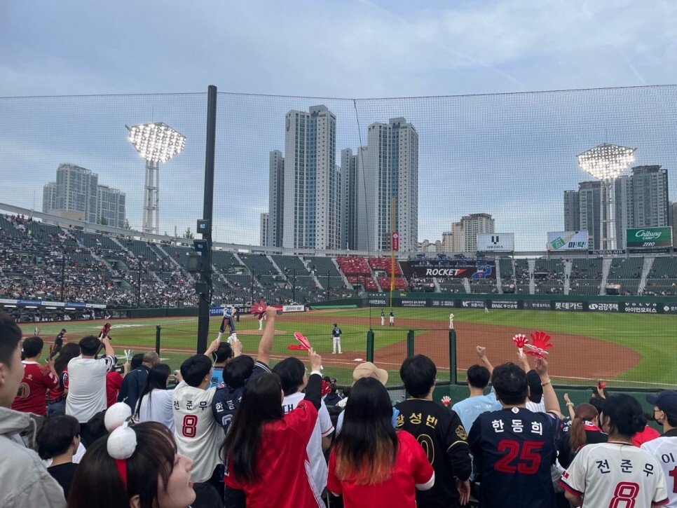 아. 아이를 데리고 가면서 좌석을 어떻게 해야 하나 싶었는데 아이 36개월 이상의 아이들은 성인과 동일하게 적용됩니다. 즉 좌석을 사야 해요. 다만 내야 상단, 중앙 상단 석, 외야석은 초등학생 요금 5000원을 받아요. 그 외엔 다 성인과 동일합니다. 초등학생 적용되는 자리를 보니 아주아주 뒤쪽이었어요. 아이들은 하나도 안 보이는 곳이요. 전 1루라 총 3명 해서 18000원씩 54000원 입장료 냈고 수수료 3천 원까지 냈습니다.(장당 천 원) 테이블 자리가 아주 쾌적해 보이는데 좌석 당 4만 원~ 45000원이라 세명 하면 십만 원 훌쩍이네요. 좀 고민해 봐야겠어요. 음식까지 준비해서 가야 하니 금액이 꽤 나올 것 같습니다.