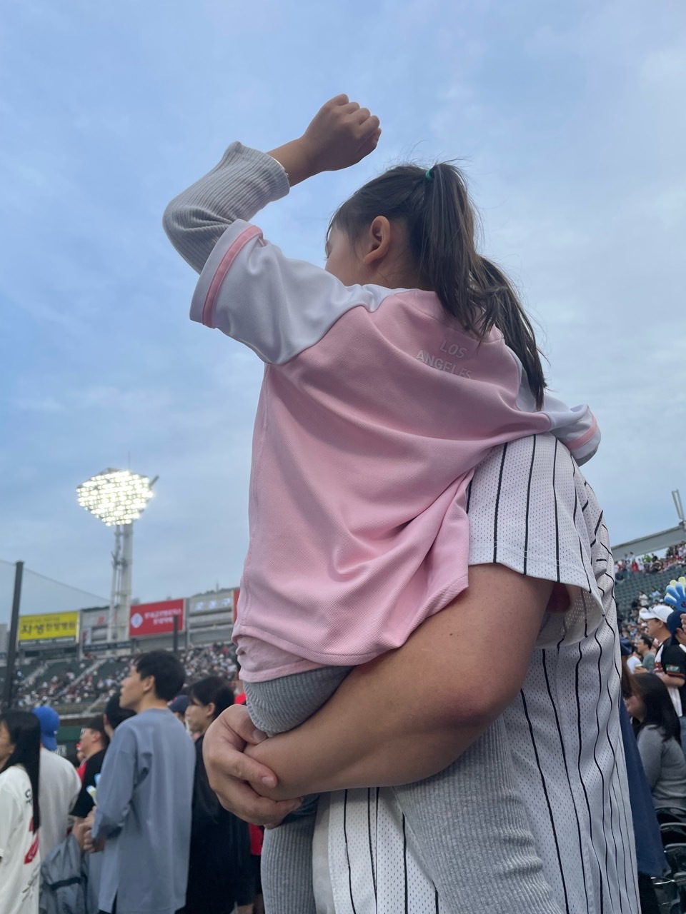 우리 애 지친 거 보이시죠? 아이를 야구장 데려갈 땐 체력 안배를 해서 가야겠어요. 다음엔 주말에 가야겠어요. 토요일 경기는 5시 반에 시작하니 미리 낮잠을 재워서 좀 체력을 충전시켜놓고 야구장 데려가야겠어요. 평일엔 너무 힘드네요. 저도 힘든데 아이는 오죽할까요? 역시 집에 오니 10시 넘었고 아이는 대충 닦이고 옷 갈아입혀 재웠어요. 다음엔 꼭 주말 티켓팅에 성공할 겁니다!(안 가겠다는 소리는 절대 안하네요.ㅎㅎ) 오랜만에 직관을 했는데 이겨서 너무 좋아요! 그런데 사람들은 너무 일방적으로 이기니 또 재미없다고 하시네요. ㅎㅎㅎ