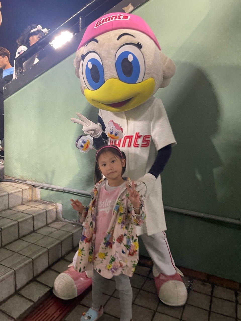이 동영상은 아주 약과에요. 수비 때 혼자 신나서 춤추고 놀았어요. 이렇게 우리 아이의 텐션이 5회까지 가더라고요. 5회 때 1점 더 내어 이미 9-0이었답니다. 롯데 팬들이 얼마나 기분이 좋았는지 아시겠죠? 난리, 난리 이런 난리도 아니었답니다. 사람들이 기분 좋아서 더 사 먹고 하길래 저도 당겨서 하율이 데리고 어묵을 사러 갔답니다. 간 길에 아주 귀여운 롯데자이언츠 캐릭터도 만나고 좋았어요.
