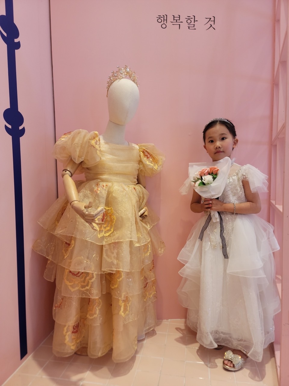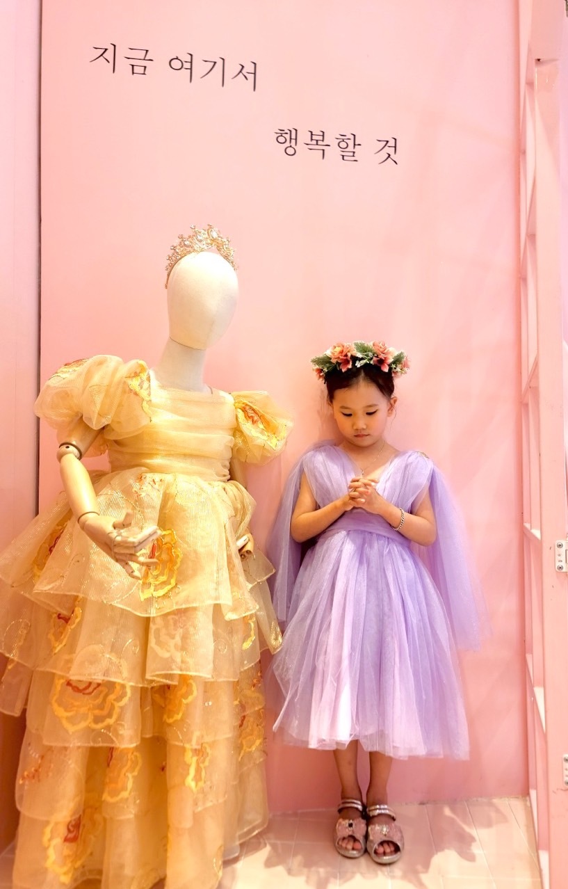 이렇게 실컷 다 찍으니 1시간 반이 흘렀어요. 하율이가 아주 행복했다 했어요. 사진 찍으러 밖으로 가는 길에 백화점 손님들이 다들 너무 이쁘다 하며 아이를 가지신 부모님들은 저희에게 어떻게 하면 이거 할 수 있냐고 몇 명이나 물으셨답니다. 하율이도 그걸 들어서 그런지 더욱 표정에 자신감이 넘치고 드레스를 갈아입은 후로도 아이가 주체를 하지 못하며 너무 신나했어요. 집에 와서까지요. 그래서 어쩔 수 없이 집에 와서 또 나갔답니다.. 나가재요. 너무 신난답니다. 아주 텐션이 하늘을 찔렀어요. 아이가 행복해하니 저도 기분이 좋습니다. 1년에 한 번 정도 생일날 와서 사진 찍어줘야겠어요. 드레스 신상으로 입혀서 공주 놀이하면 아이가 아주 좋아할 것 같습니다. 꼭 가보세요! 아이가 엄마, 아빠 최고! 할 거예요! 유치부들은 공주 노래를 부르잖아요??? 우리 아이 공주 만들자고요!
