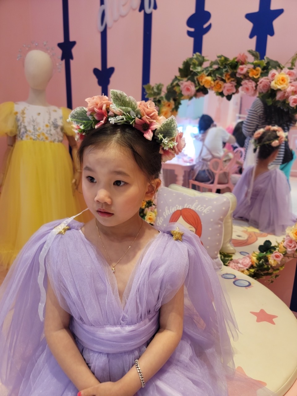 어떤가요? 다른가요? 너무 이쁘네요. 티아라가 너무 이뻤어요. 아이들용 장난감이 아닌 정말 예쁜 티아라를 많이 가져다 놓으셨더라고요. 정말 오늘 하율이 사진만 100장은 찍은 것 같아요. 중간중간 이렇게도 찍어보고 저렇게도 찍어보고 매장 안에 포토존이 좀 더 많았다면 좋았겠지만 그래도 최대한 다양하게 활용하려 했어요.