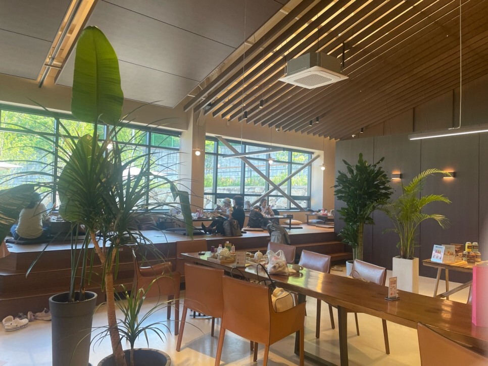 입구와 외관이 아주 멋드러집니다. 무슨 호텔로비 같은 느낌이 들어요. 안의 인테리어도 아주 깔끔하고 멋진 게 딱 엄마들 취향입니다. 전체적으로 우드톤으로 해서 아주 차분한 느낌이 들면서 세련된 봉이네요. 천고도 아주 높아 탁 트여 있고 전혀 답답하지 않습니다.