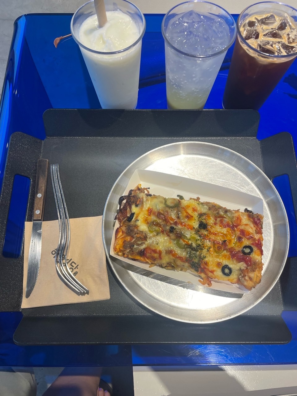 저흰 아이스 아메리카노, 요거트 스무디, 청포도 에이드, 언양불고기 피자빵 이렇게 시켜보았어요. 엄마, 아빠가 너무 배불러 빵은 하나만 하라 해서 신중히 선택하였답니다.