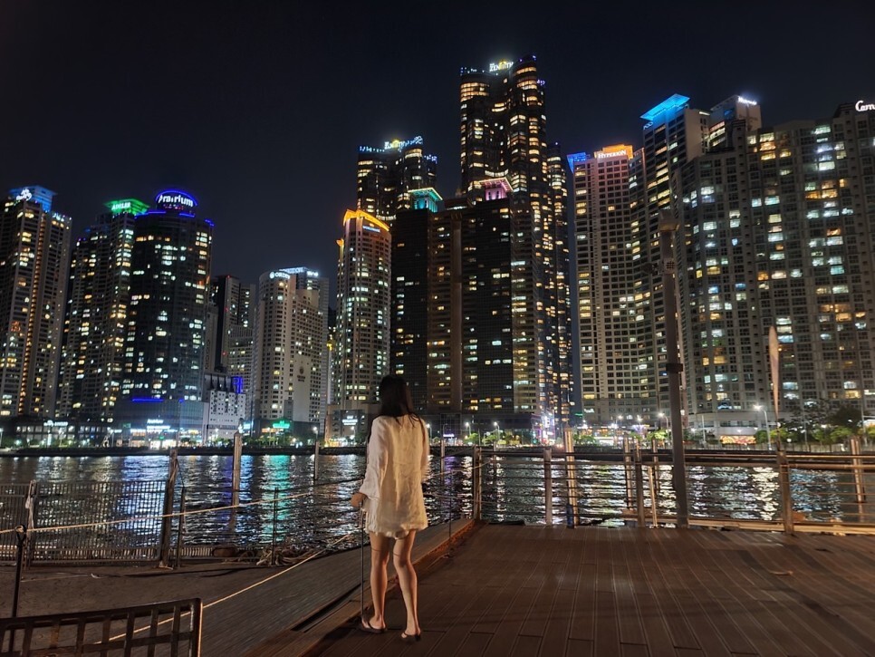 사진도 찍어보았는데 어떤가요???? 야경은 정말 끝내주네요. 별이 쏟아지는 것 같은 느낌이에요. 야경과 함께 맥주 마시고 좋은 사람들과 즐기기엔 더더욱 좋은 것 같습니다. 실제로 가족단위도 많이 보이고 데이트 온 커플도 많이 보이네요. 이 중에 부산 사람은 몇 명이나 될까 싶지만요. 이렇게 야경을 멋지게 찍을 거면 좀 더 의상을 신경 쓸 걸 그랬어요. 살펴보니 롱 원피스가 많이 보이던데 롱 원피스가 잘 나오는 걸까요?? 저도 다음에 입고 또 올 거예요. 아직 안 가보셨던 부산 분들. 한번 가볼만하답니다. 멋진 사진 남기고 오세요~