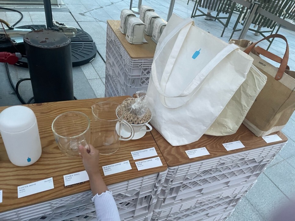 기간은 6월1일 부터 7월 31일까지입니다. 이미 오픈 초엔 줄을 많이 섰다죠? 지금은 조금 여유 있어요. 커피뿐 아니라 텀블러, 원두도 판매하고 있답니다. 전 블루 보틀 왜 유명한지 몰랐거든요?? 먹어보니 아. 너무 쟤 스타일인 거예요. 전 콜드브루로 먹어보았어요. 블루 보틀 때문이라도 한번 와야겠죠?? 7월 말까지 해서 조금 여유로우니 한번 들러보세요.