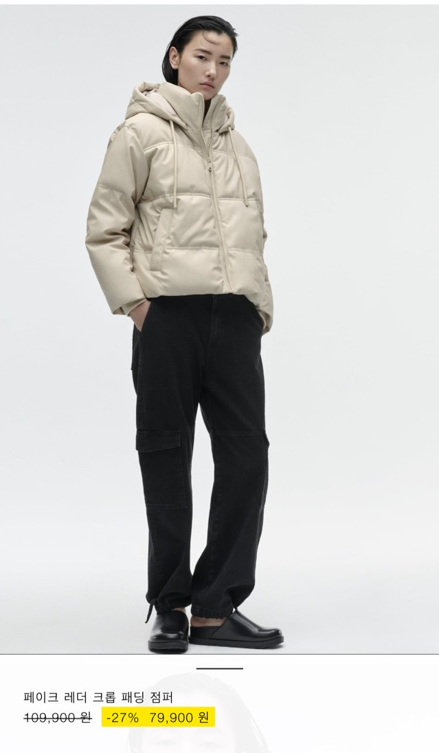 - 페이크 레더 크롭 패딩 점퍼 109900원 -> 79900원